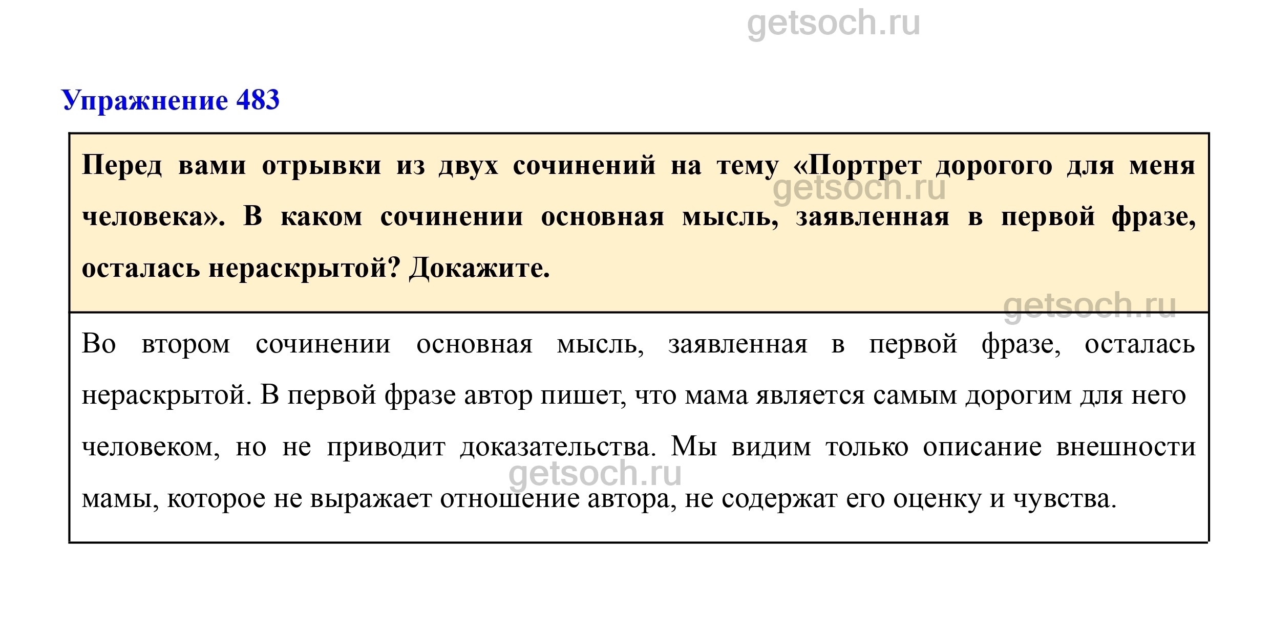 Перед вами отрывки из двух сочинений на тему «Портрет дорогого для меня человека». В каком сочинении основная мысль, заявленная в первой фразе, осталась нераскрытой? Докажите.