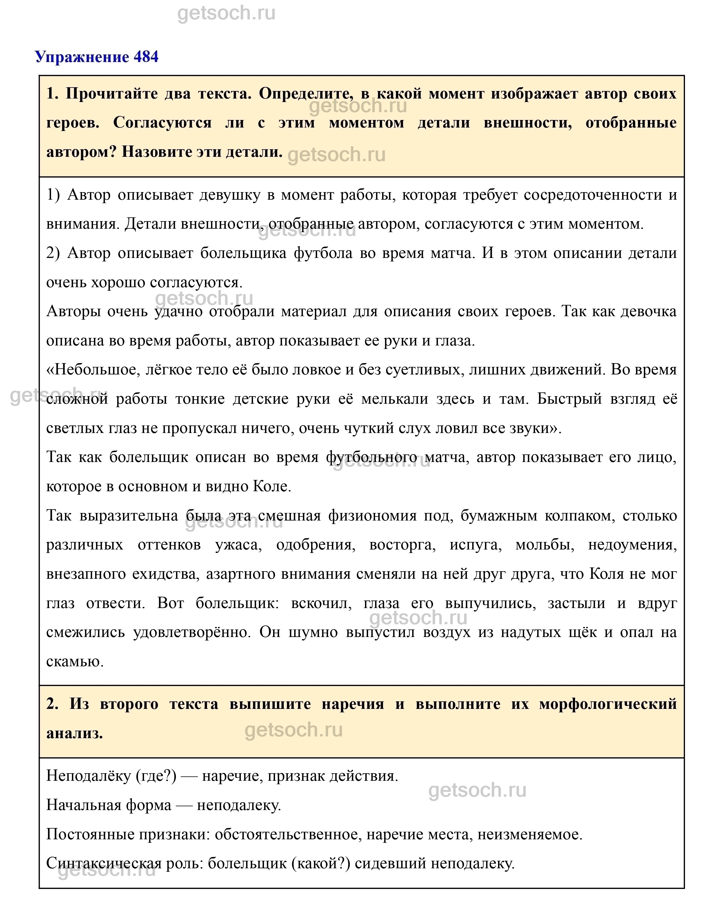 Рассмотрим ответы на Упражнение 484 из учебника по русскому языку для 7 класса Разумовской