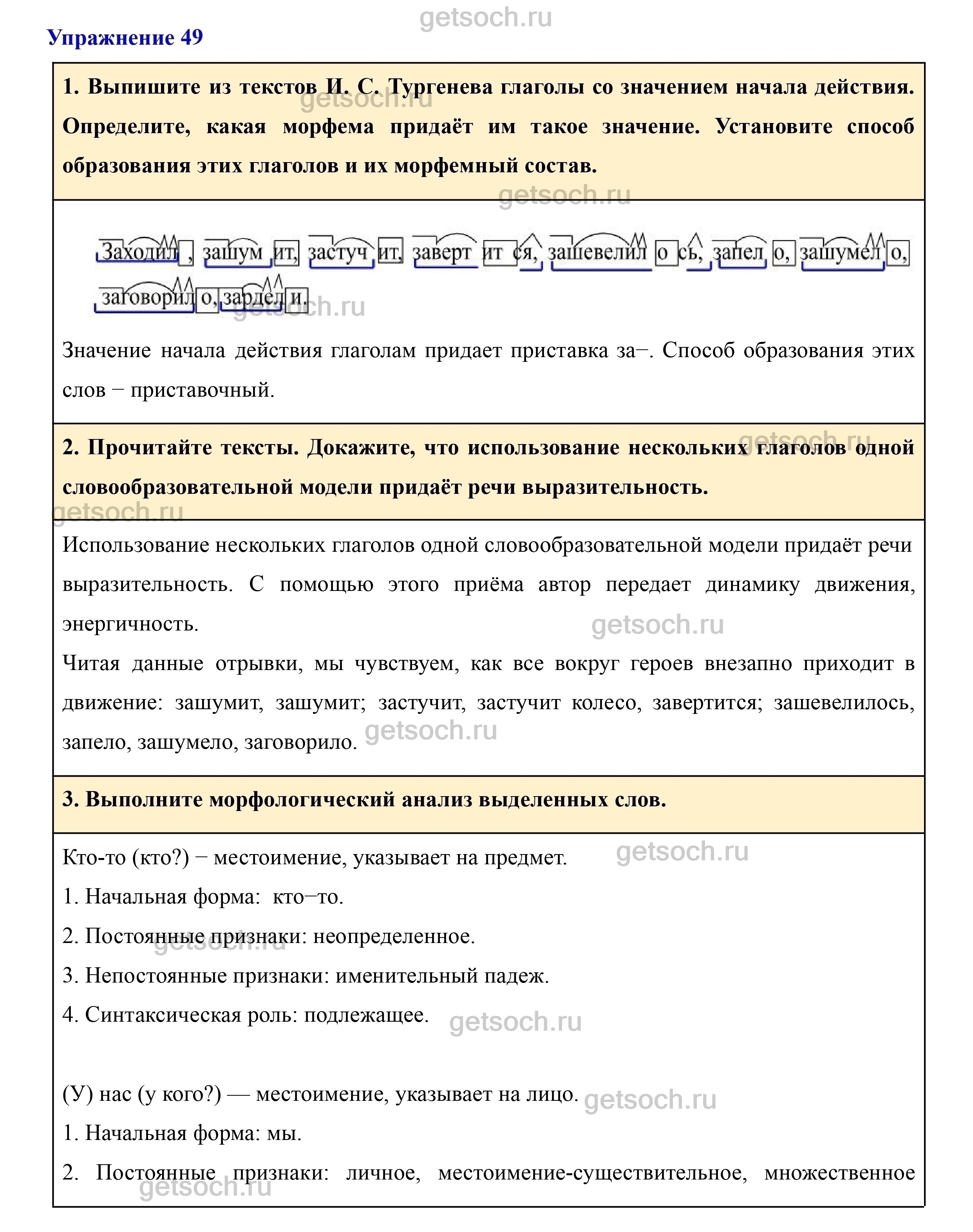 1. Выпишите из текстов И. С. Тургенева глаголы со значением начала действия. Определите, какая морфема придаёт им такое значение. Установите способ образования этих глаголов и их морфемный состав.