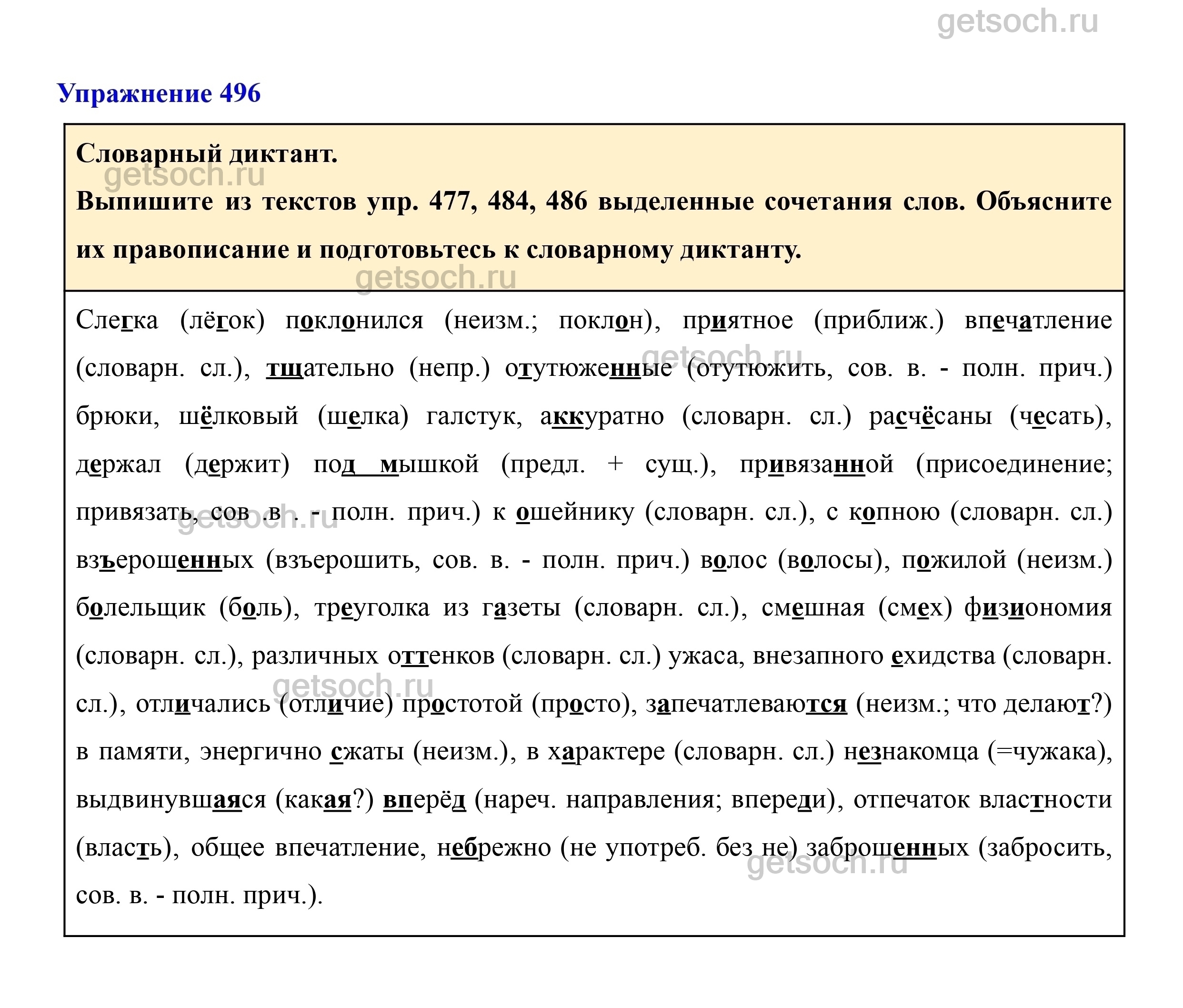 Выпишите из текстов упр. 477, 484, 486 выделенные сочетания слов. Объясните их правописание и подготовьтесь к словарному диктанту.