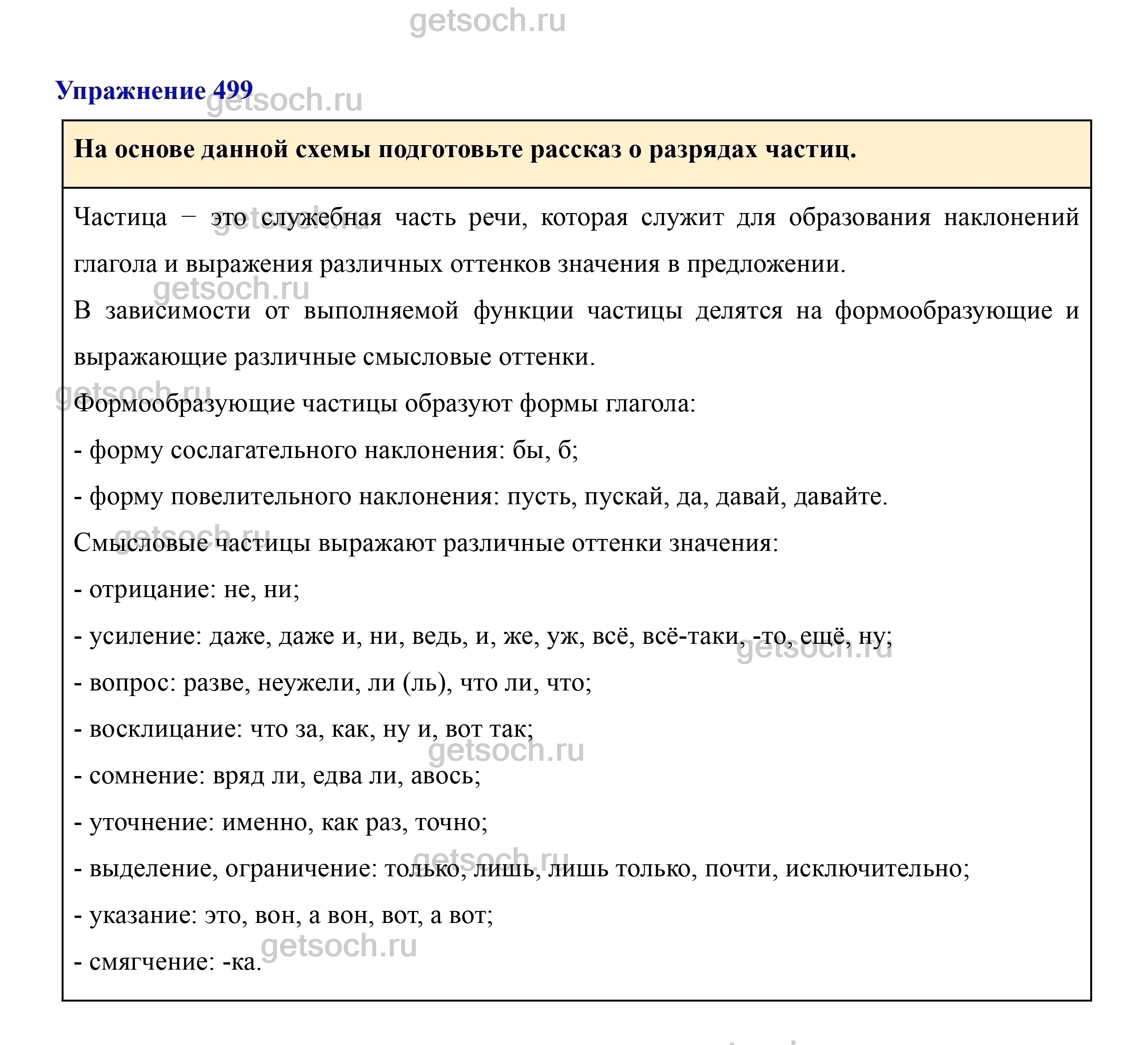 Рассмотрим ответы на Упражнение 499 из учебника по русскому языку для 7 класса Разумовской