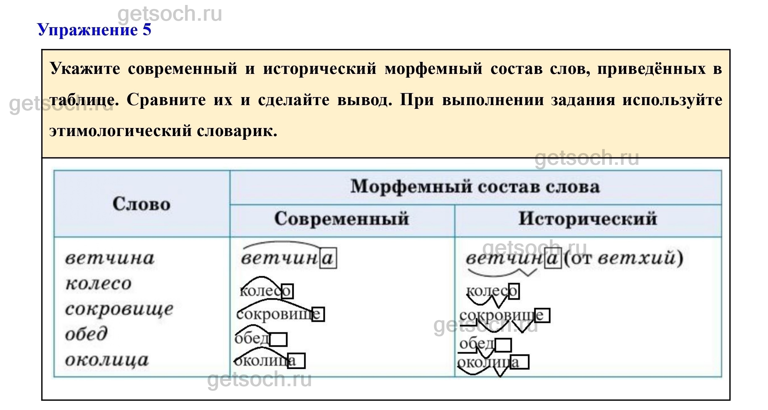 Укажите современный и исторический морфемный состав слов, приведённых в таблице. Сравните их и сделайте вывод. При выполнении задания используйте этимологический словарик.