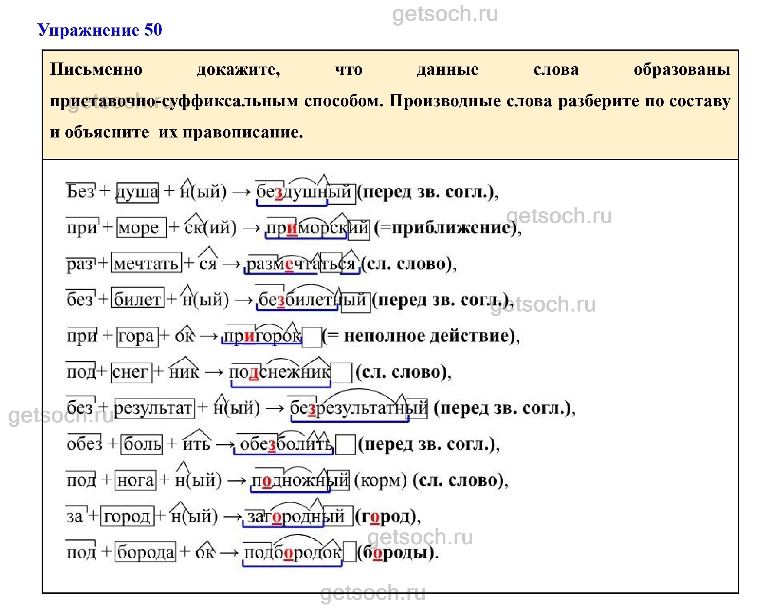 Рассмотрим ответы на Упражнение 50 из учебника по русскому языку для 7 класса Разумовской