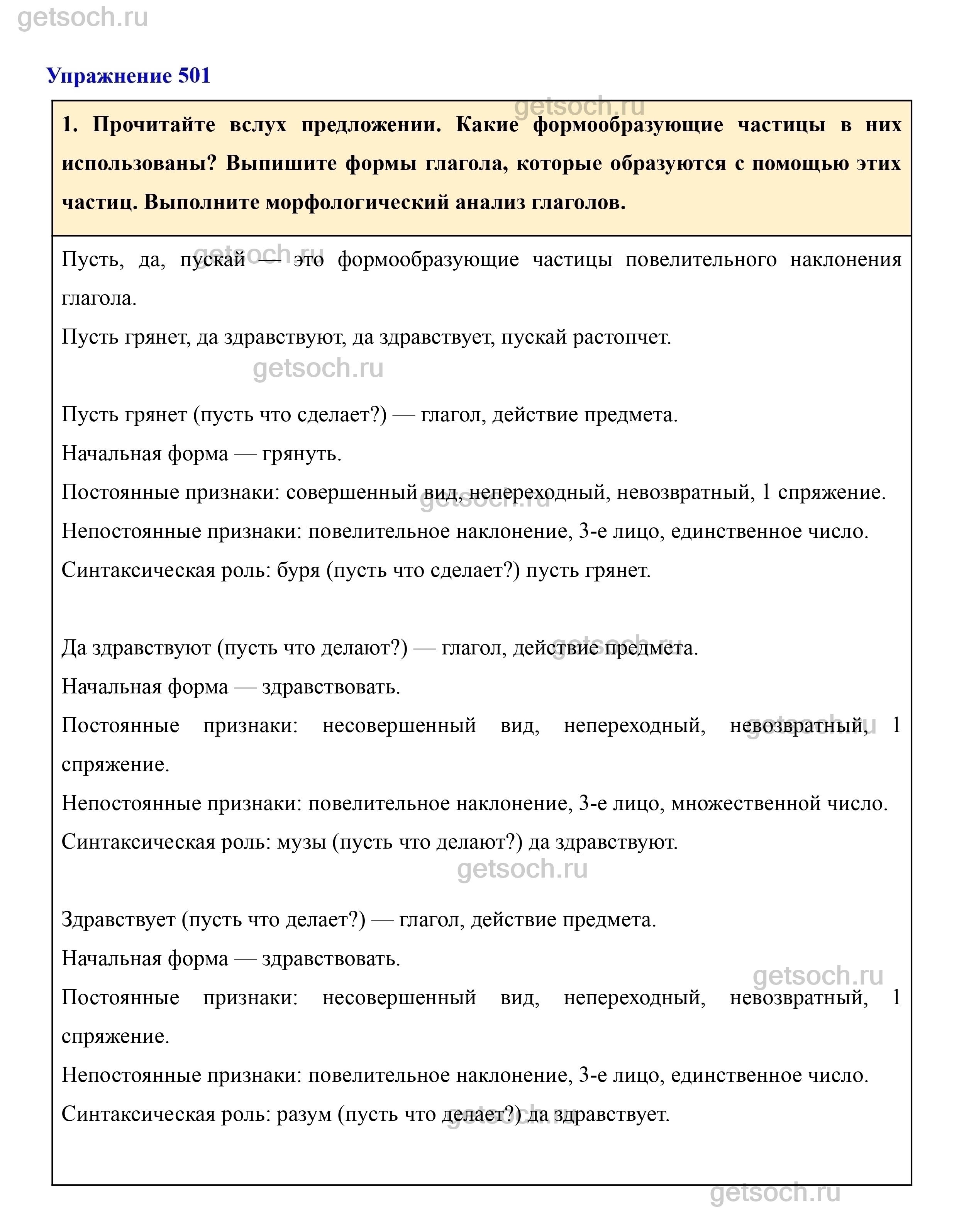 Рассмотрим ответы на Упражнение 501 из учебника по русскому языку для 7 класса Разумовской