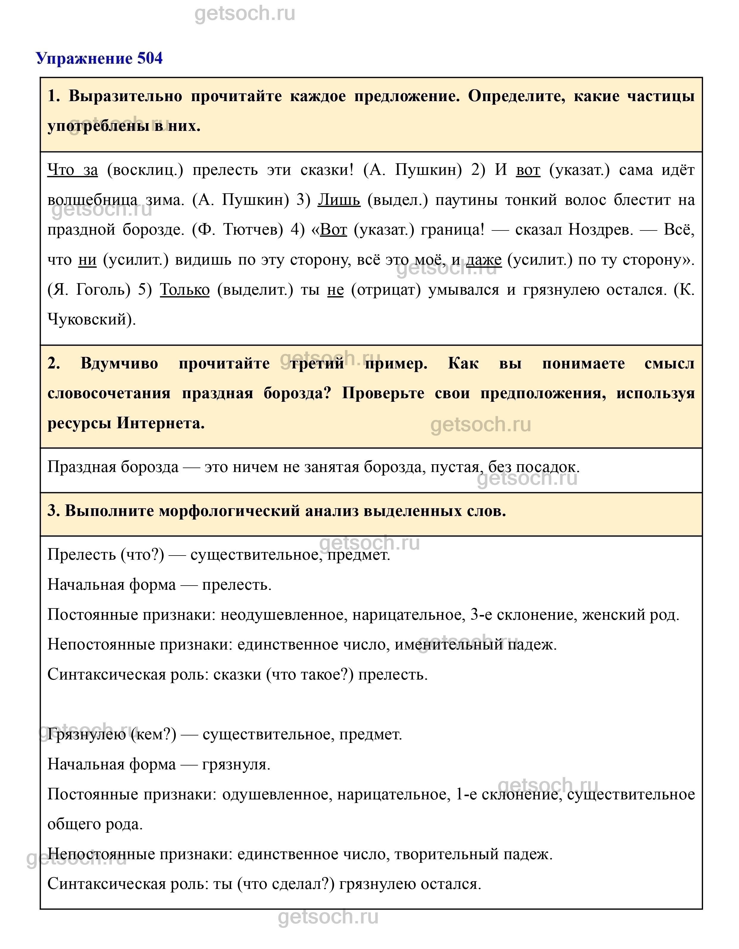 Рассмотрим ответы на Упражнение 504 из учебника по русскому языку для 7 класса Разумовской