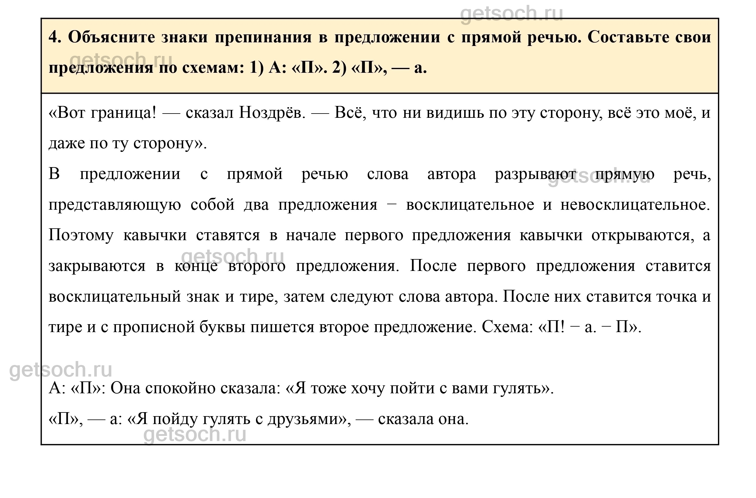 4. Объясните знаки препинания в предложении с прямой речью. Составьте свои предложения по схемам: 1) А: «П». 2) «П», — а.