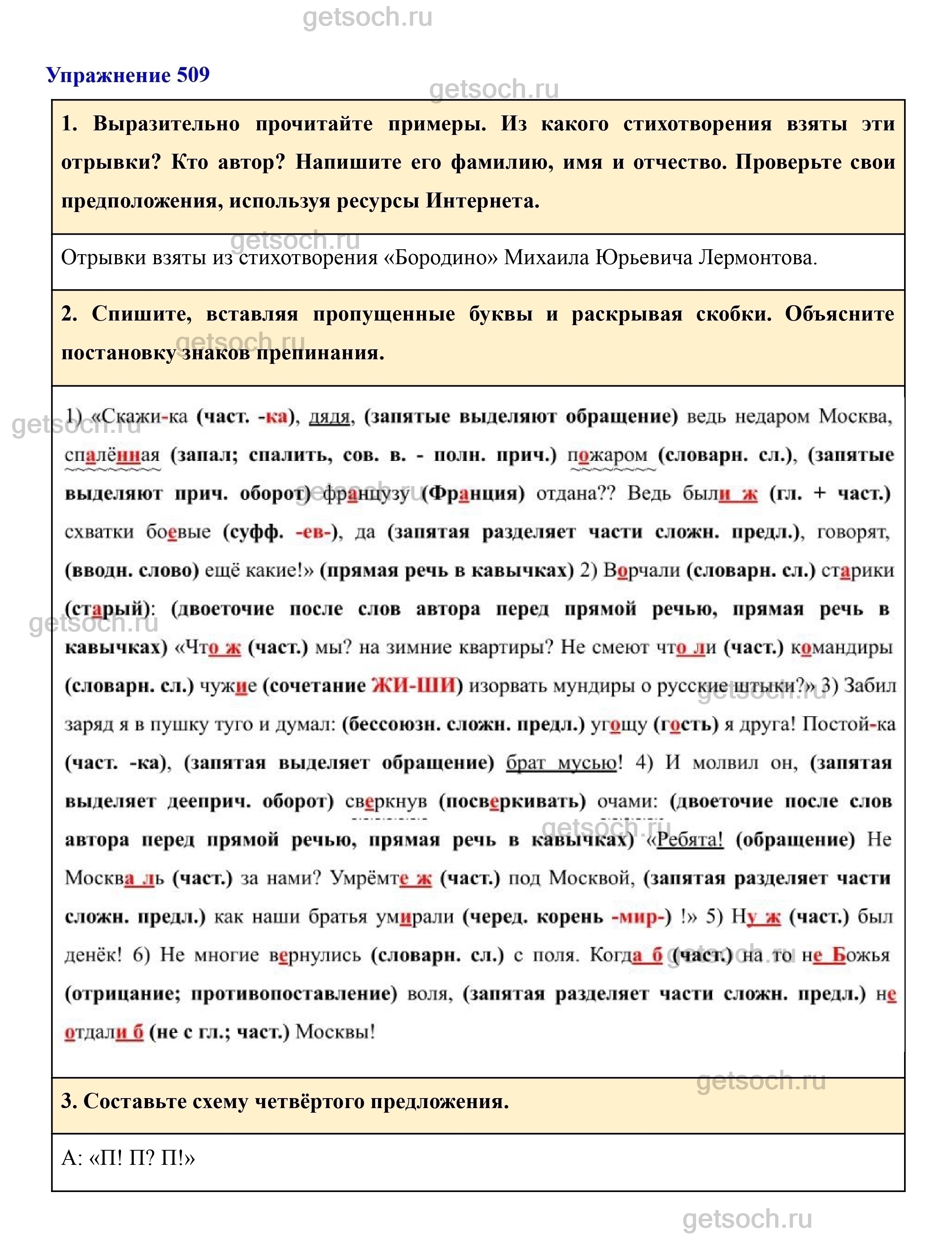 Рассмотрим ответы на Упражнение 509 из учебника по русскому языку для 7 класса Разумовской
