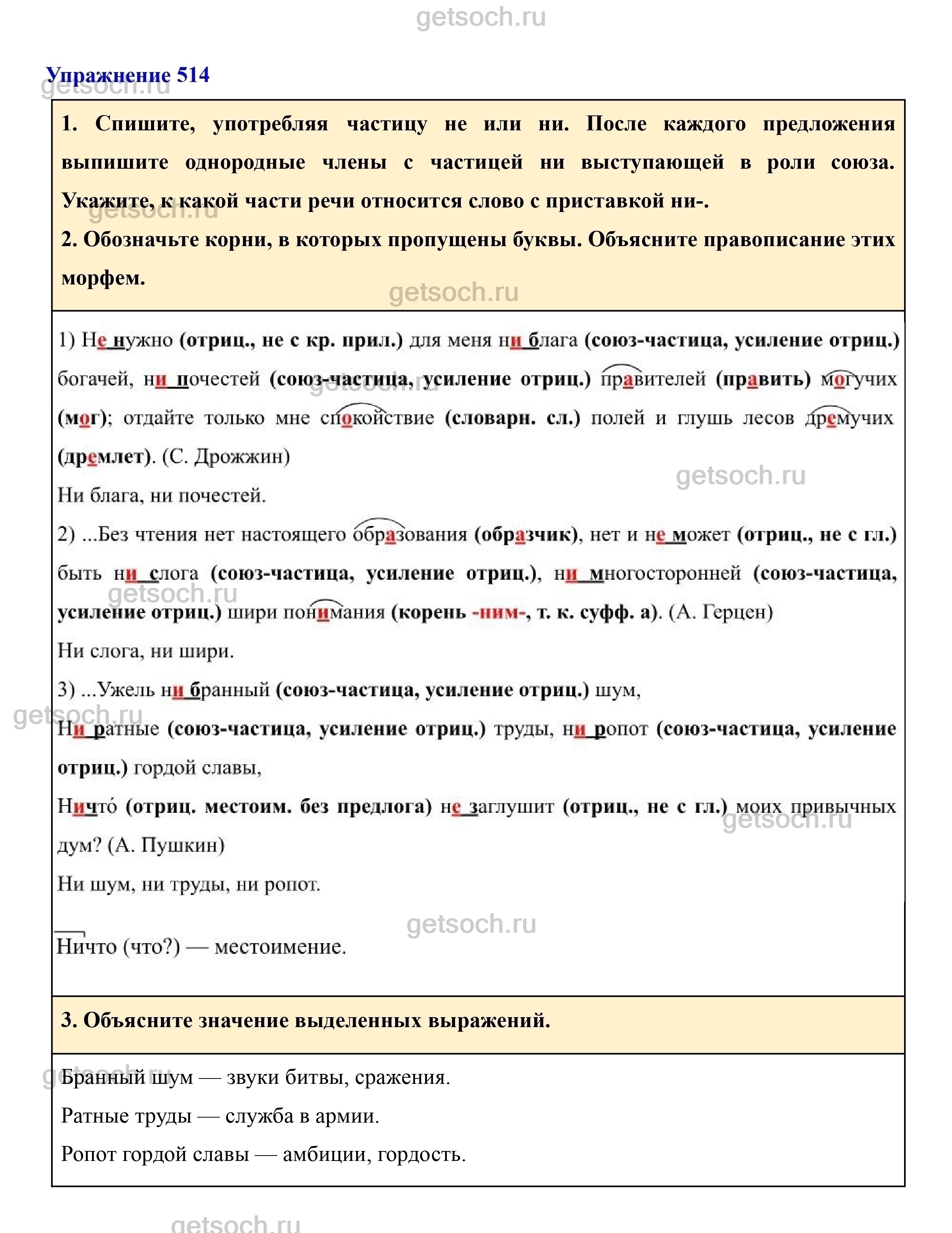 Рассмотрим ответы на Упражнение 514 из учебника по русскому языку для 7 класса Разумовской