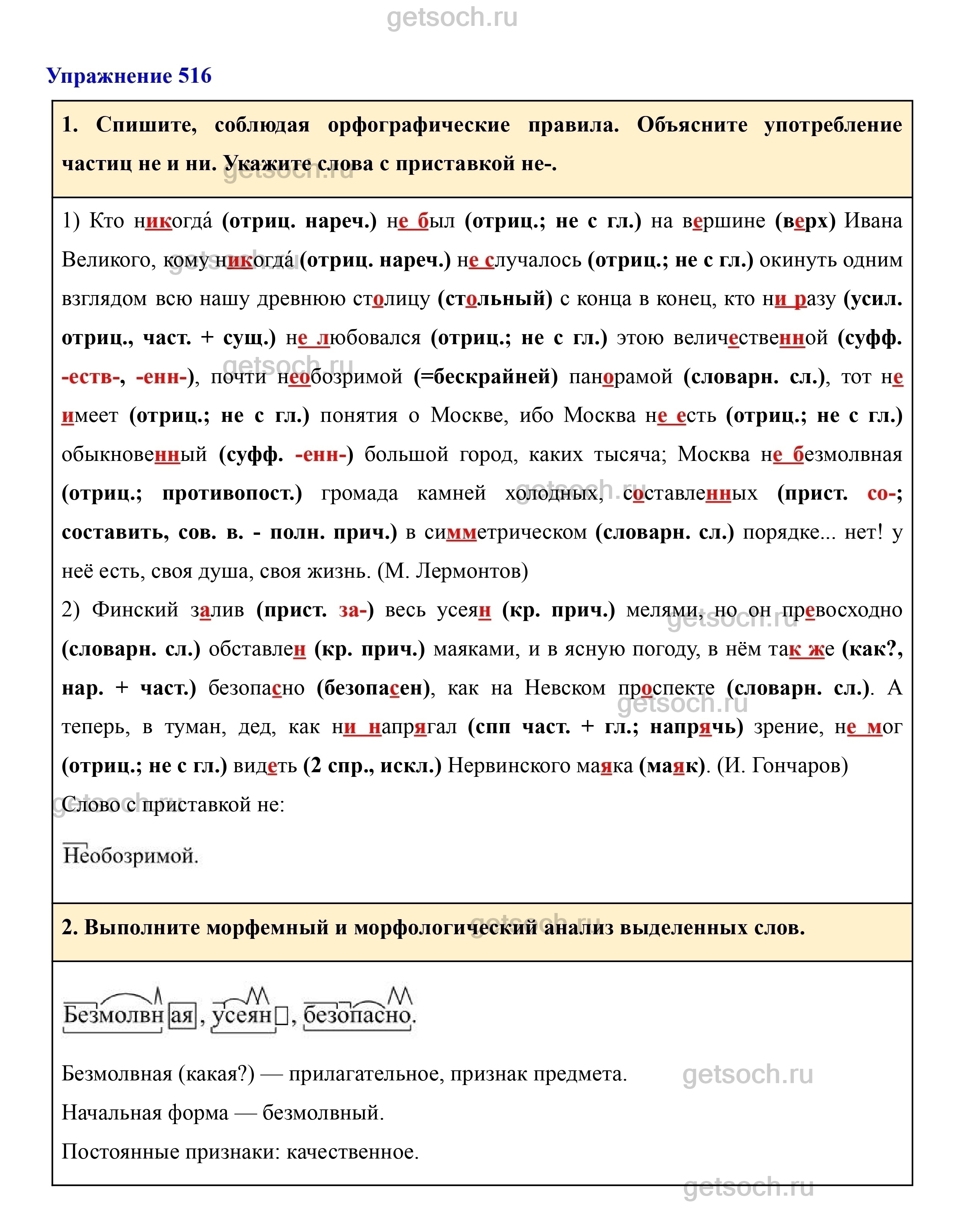 Рассмотрим ответы на Упражнение 516 из учебника по русскому языку для 7 класса Разумовской