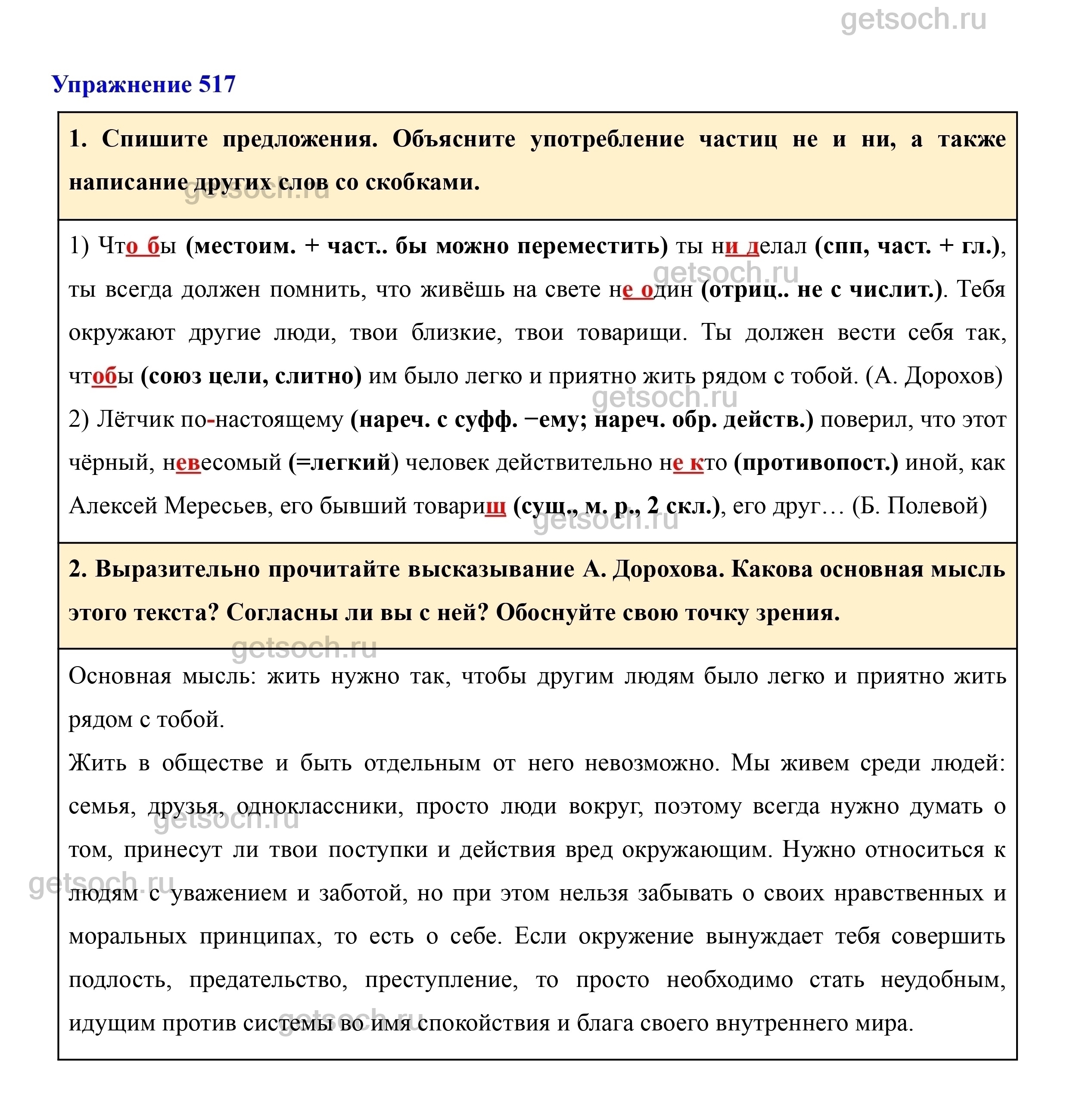 Рассмотрим ответы на Упражнение 517 из учебника по русскому языку для 7 класса Разумовской
