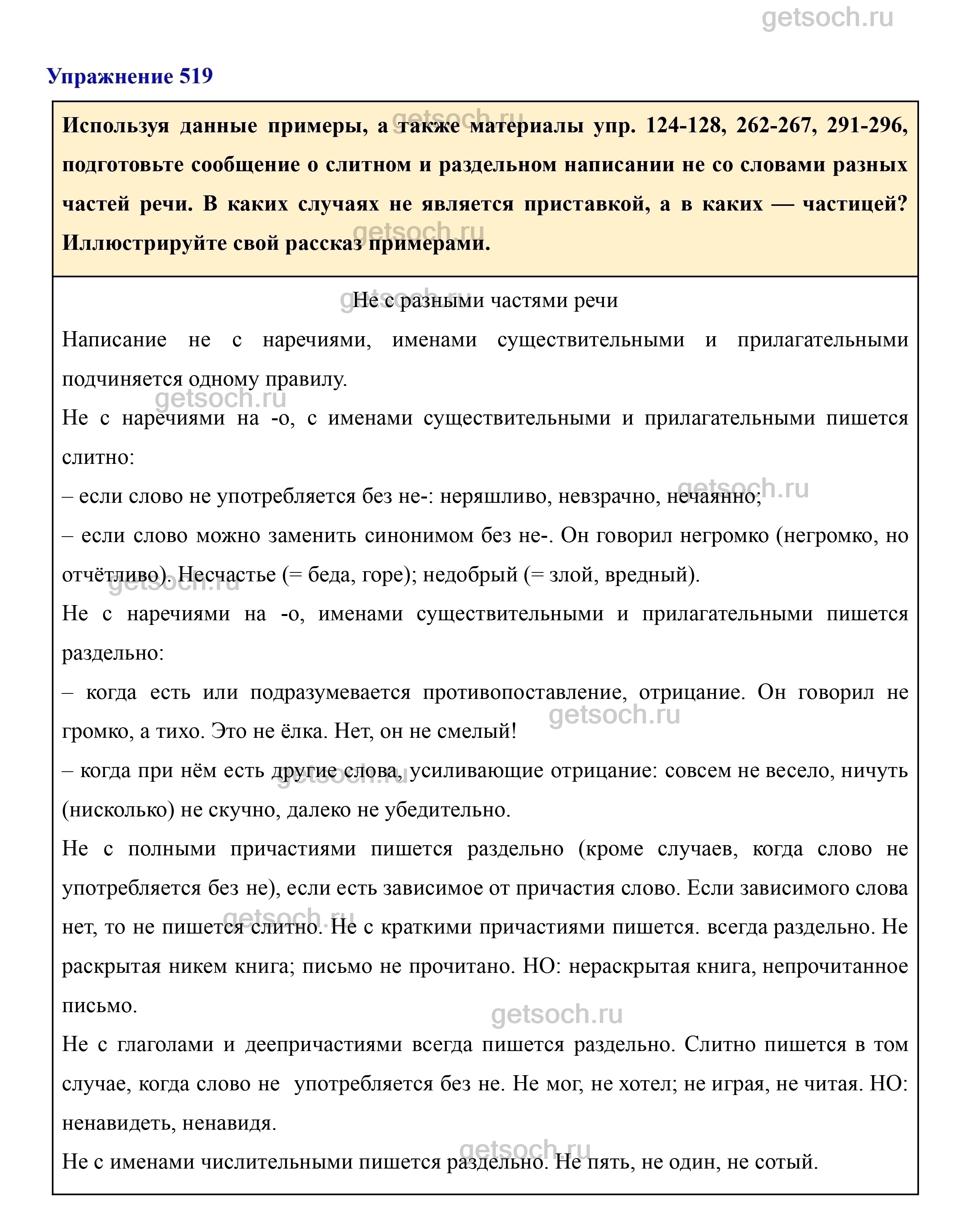Рассмотрим ответы на Упражнение 519 из учебника по русскому языку для 7 класса Разумовской