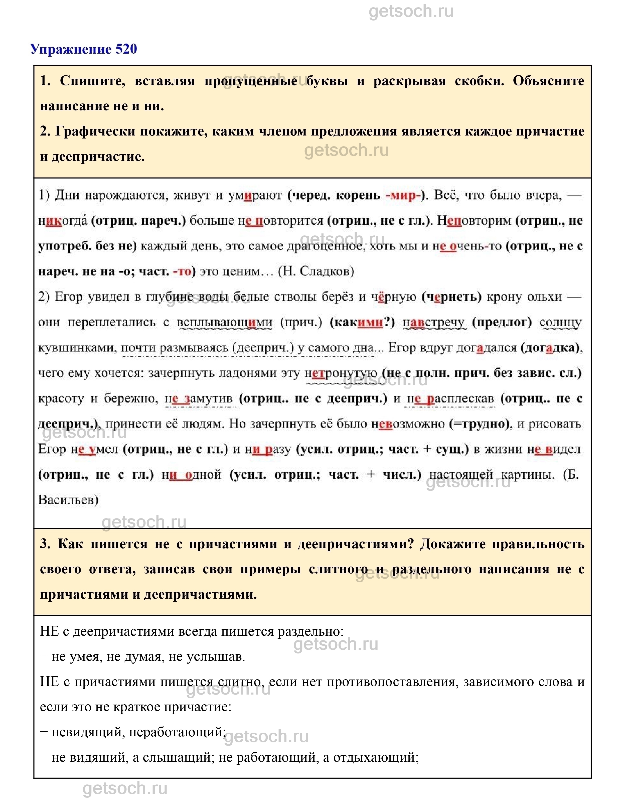 Рассмотрим ответы на Упражнение 520 из учебника по русскому языку для 7 класса Разумовской