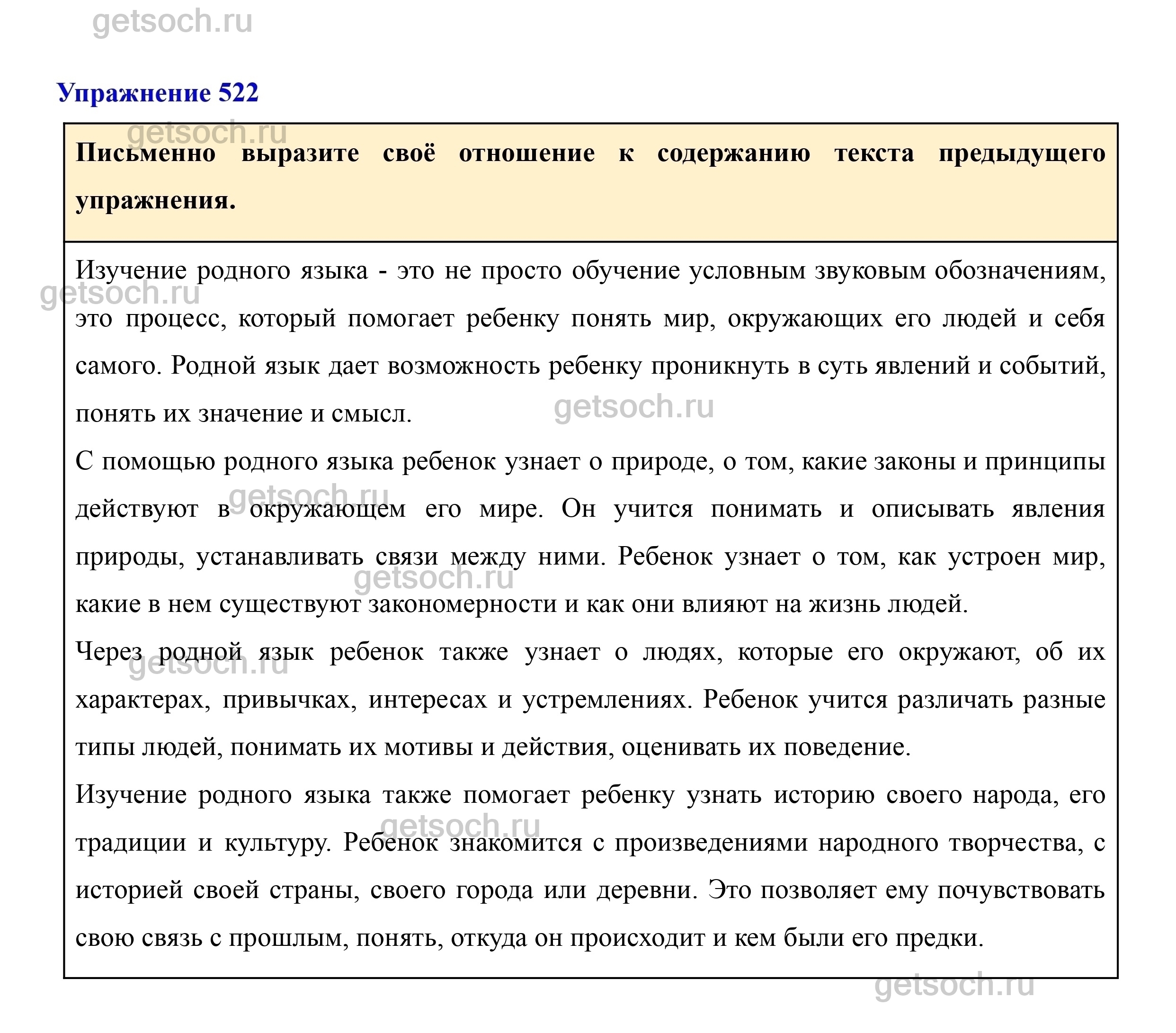 Рассмотрим ответы на Упражнение 522 из учебника по русскому языку для 7 класса Разумовской