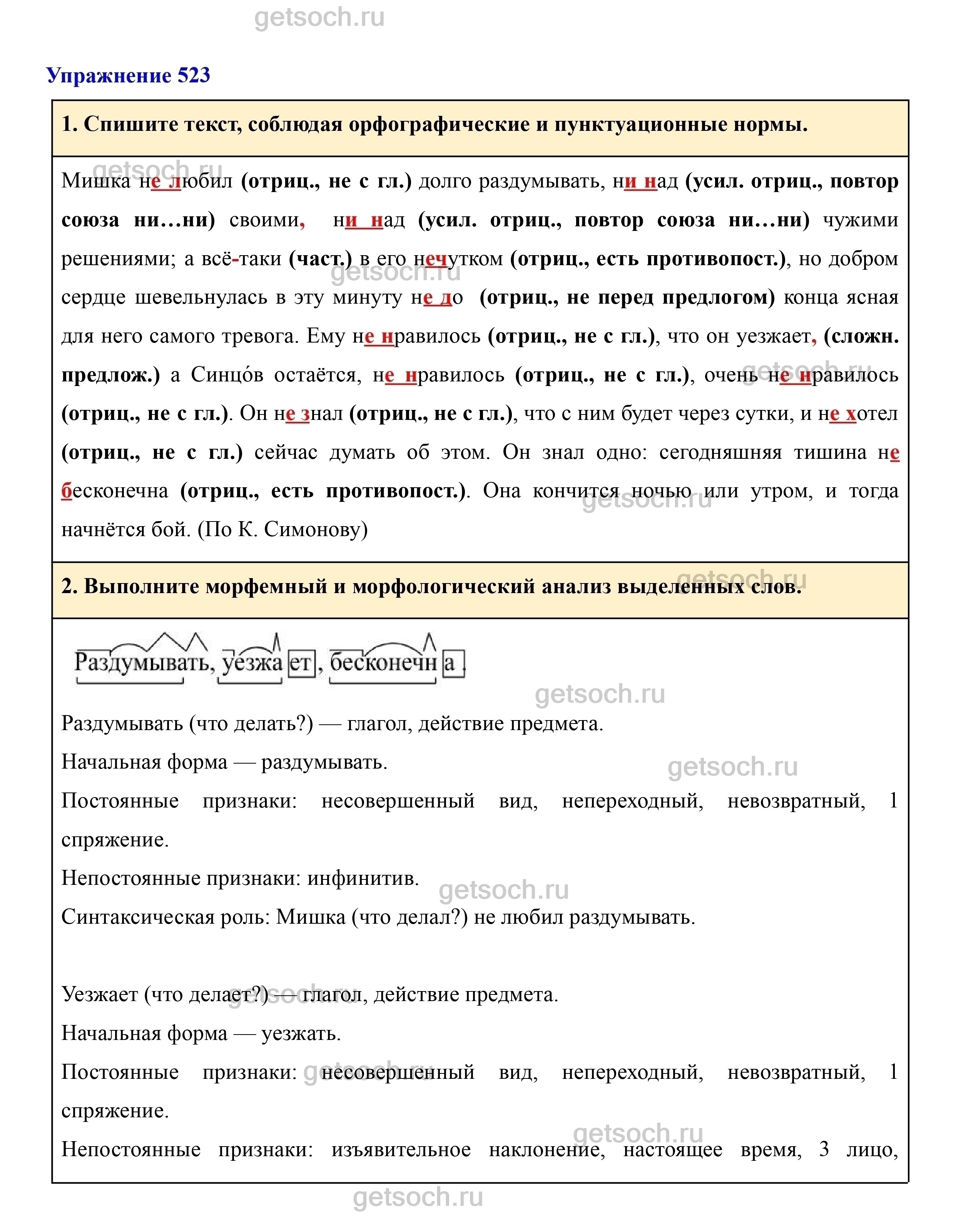Рассмотрим ответы на Упражнение 523 из учебника по русскому языку для 7 класса Разумовской