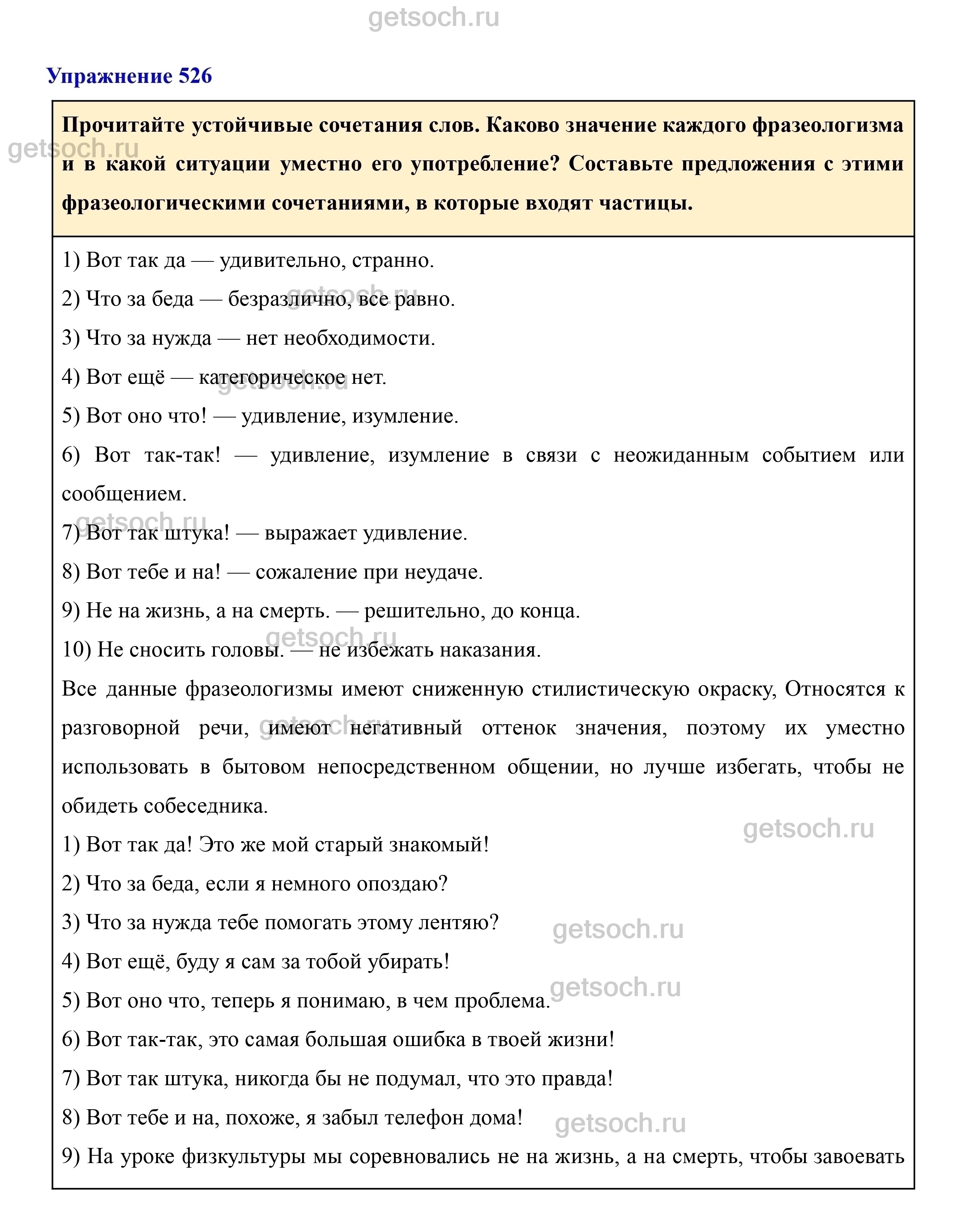 Рассмотрим ответы на Упражнение 526 из учебника по русскому языку для 7 класса Разумовской
