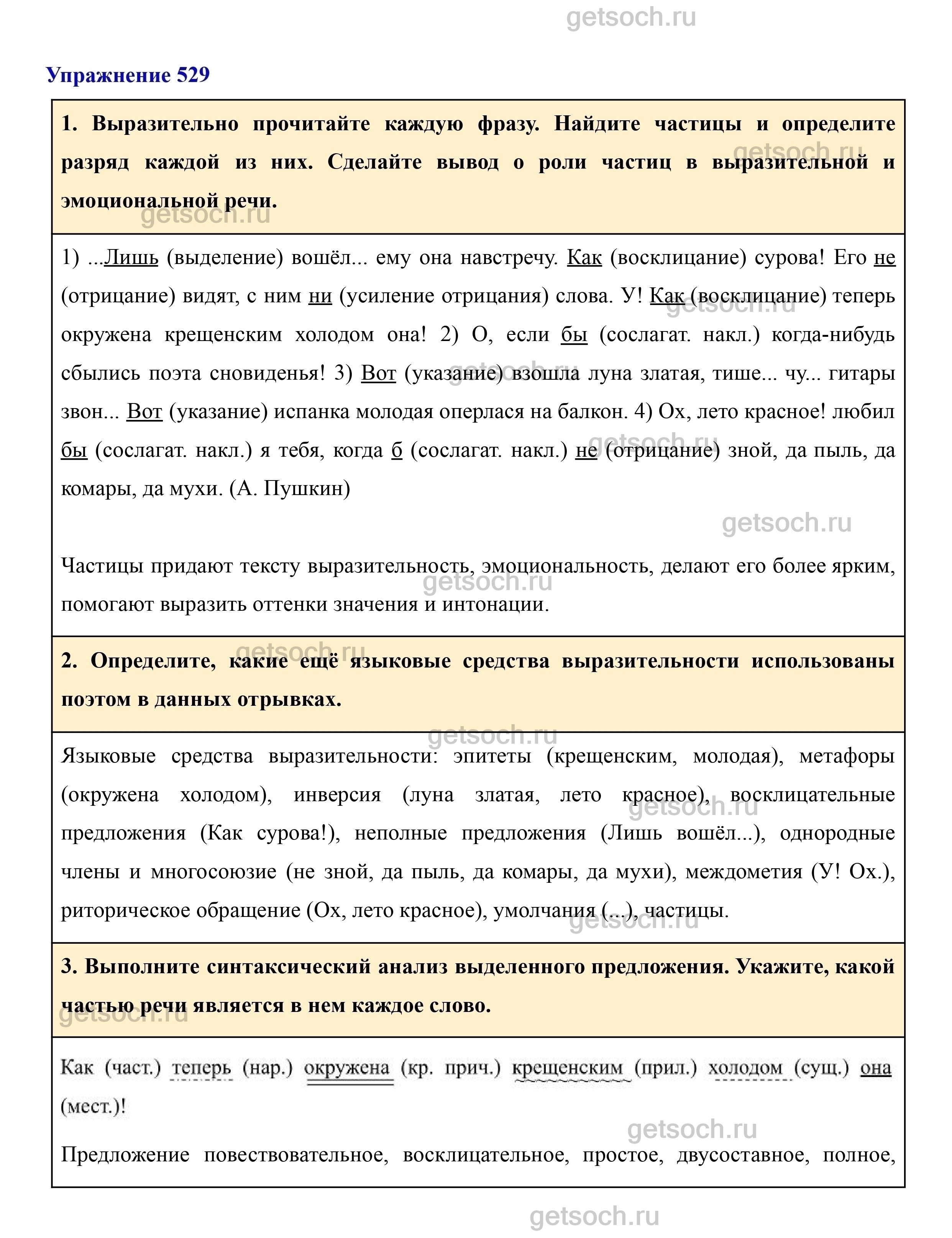 Рассмотрим ответы на Упражнение 529 из учебника по русскому языку для 7 класса Разумовской