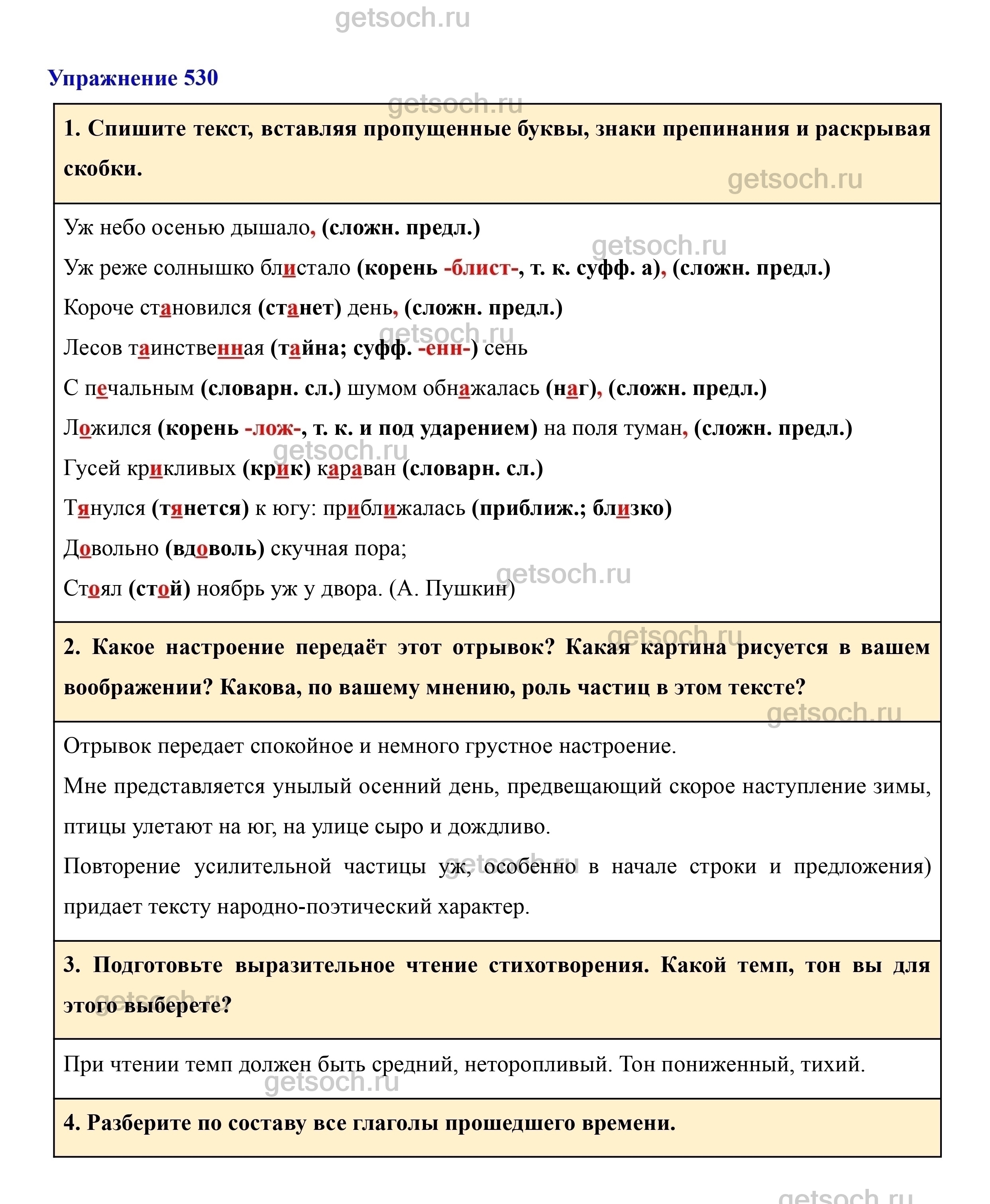 Рассмотрим ответы на Упражнение 530 из учебника по русскому языку для 7 класса Разумовской