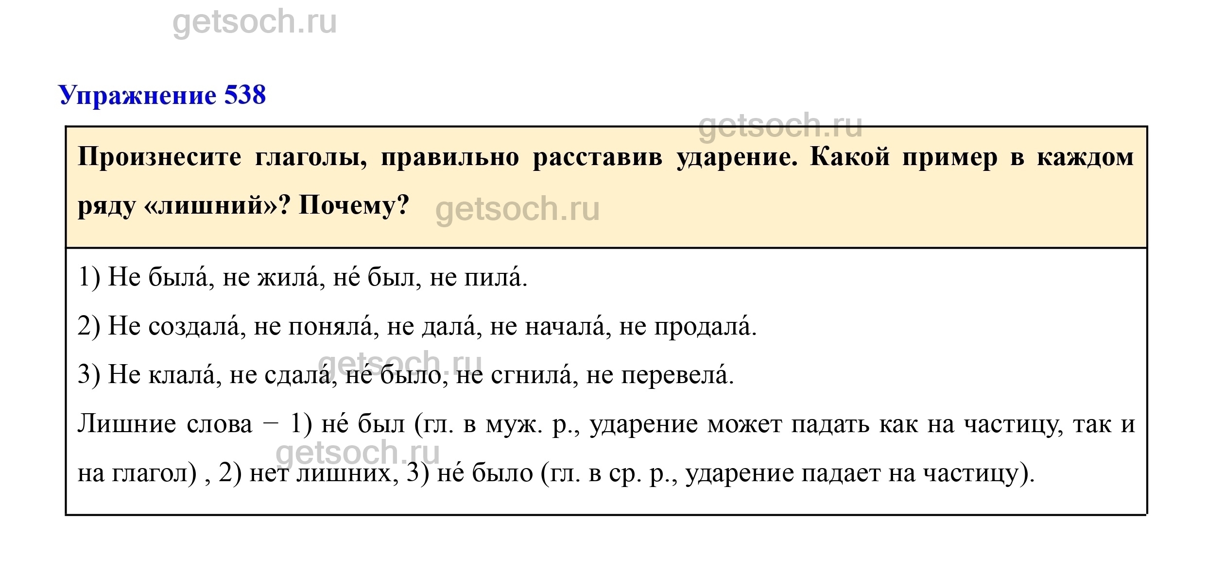 Рассмотрим ответы на Упражнение 538 из учебника по русскому языку для 7 класса Разумовской