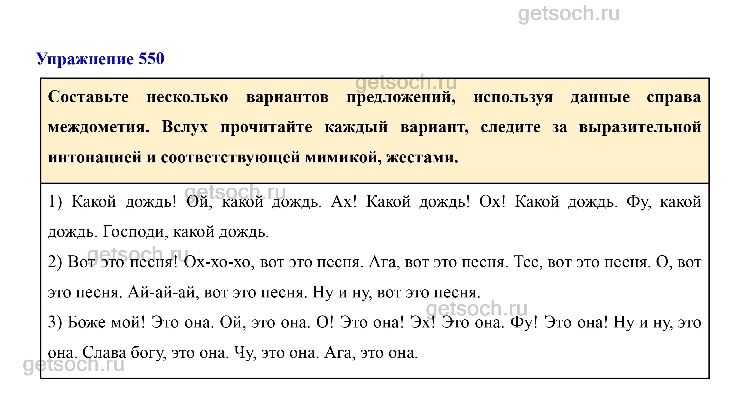 Рассмотрим ответы на Упражнение 550 из учебника по русскому языку для 7 класса Разумовской