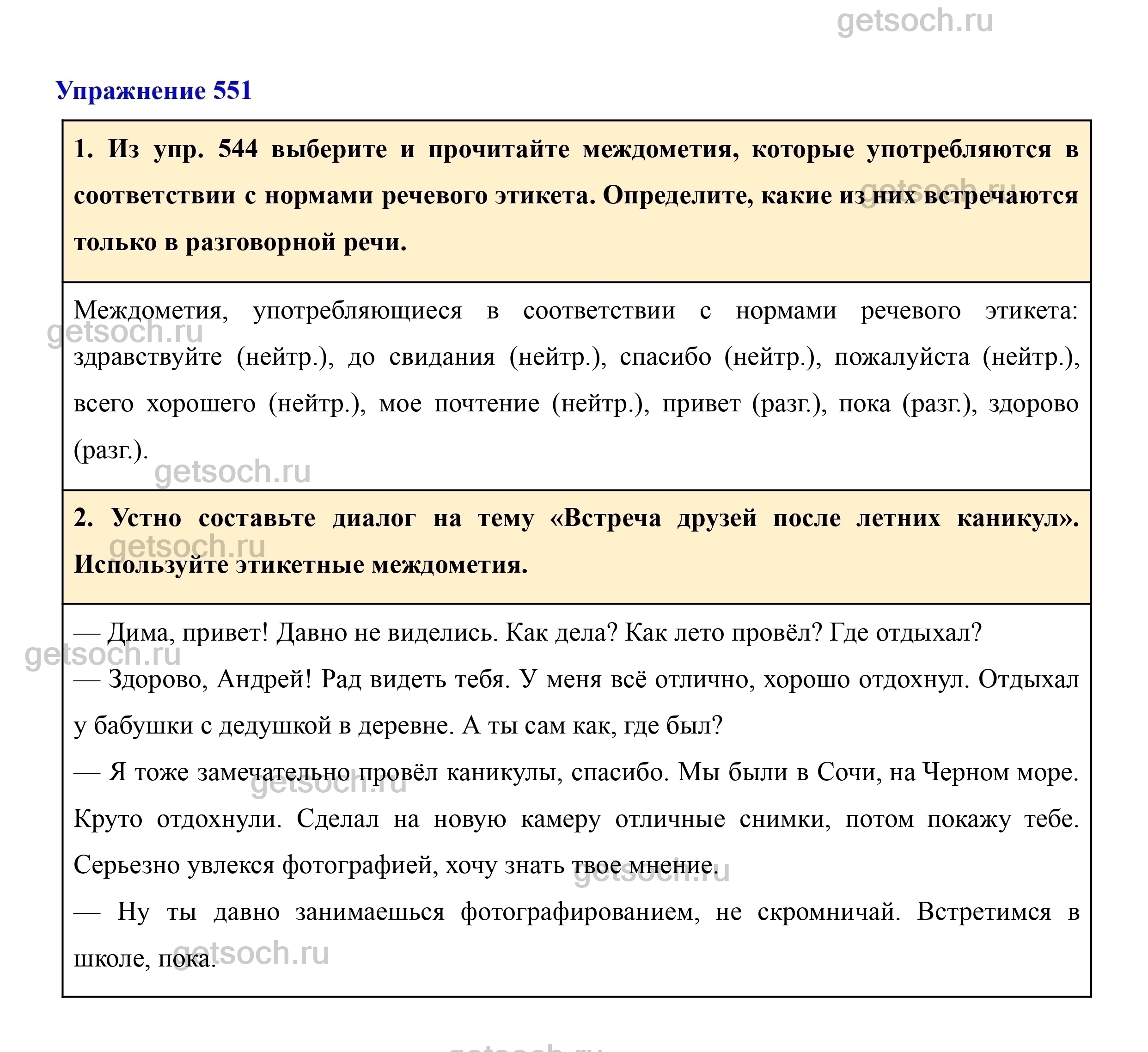 2. Устно составьте диалог на тему «Встреча друзей после летних каникул». Используйте этикетные междометия.