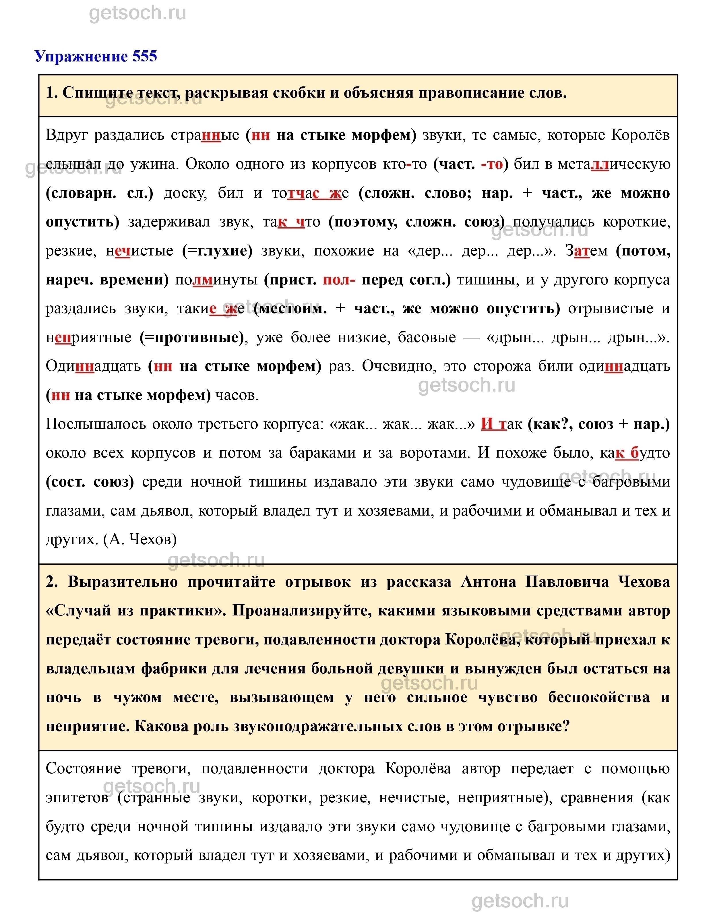 Рассмотрим ответы на Упражнение 555 из учебника по русскому языку для 7 класса Разумовской