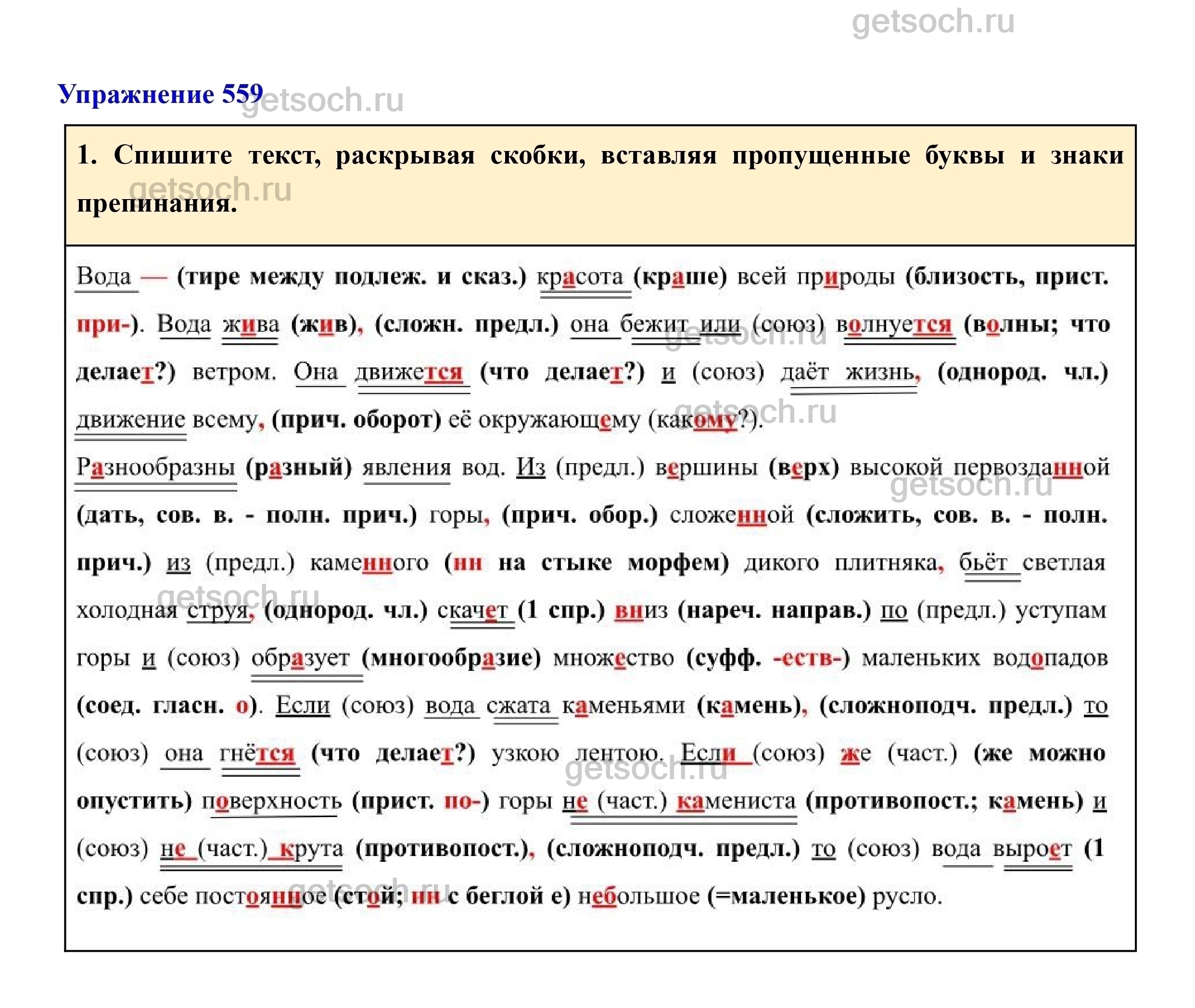 Рассмотрим ответы на Упражнение 559 из учебника по русскому языку для 7 класса Разумовской