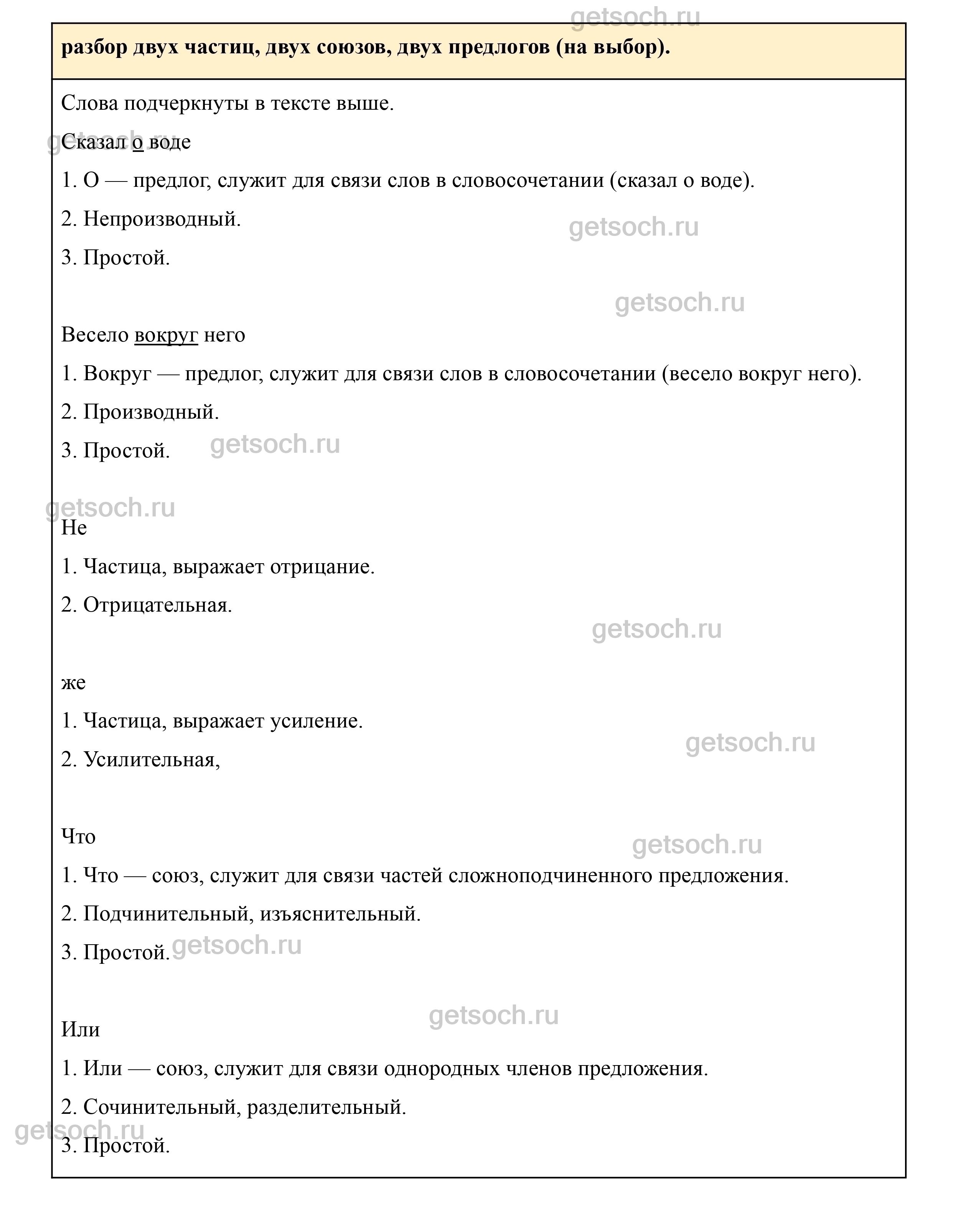 3. Подчеркните все слова служебных частей речи. Выполните морфологический разбор двух частиц, двух союзов, двух предлогов (на выбор).