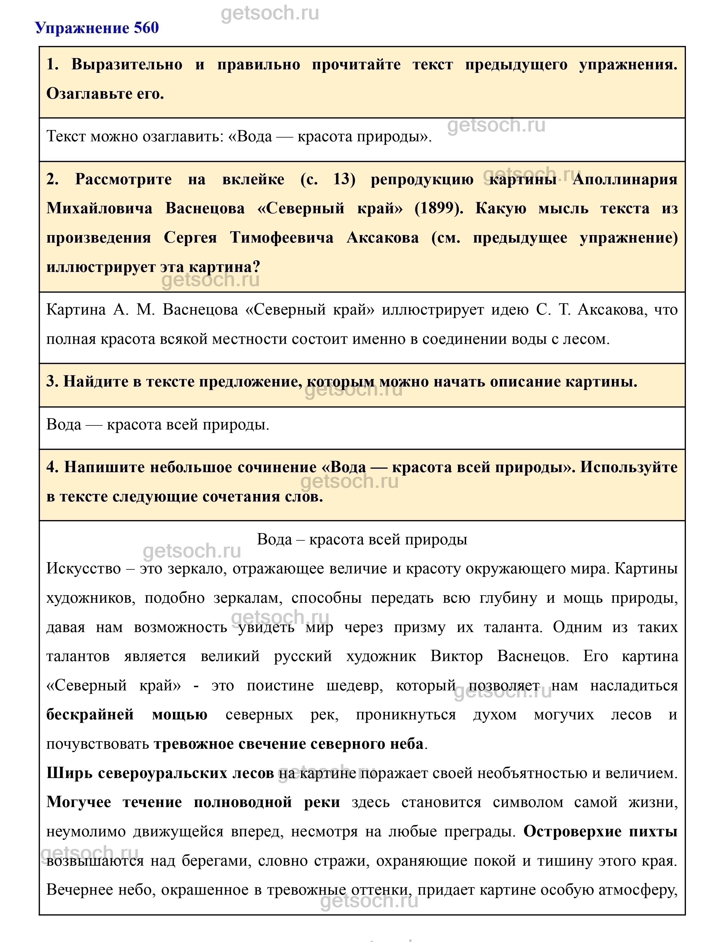 2. Рассмотрите на вклейке (с. 13) репродукцию картины Аполлинария Михайловича Васнецова «Северный край» (1899). Какую мысль текста из произведения Сергея Тимофеевича Аксакова (см. предыдущее упражнение) иллюстрирует эта картина?