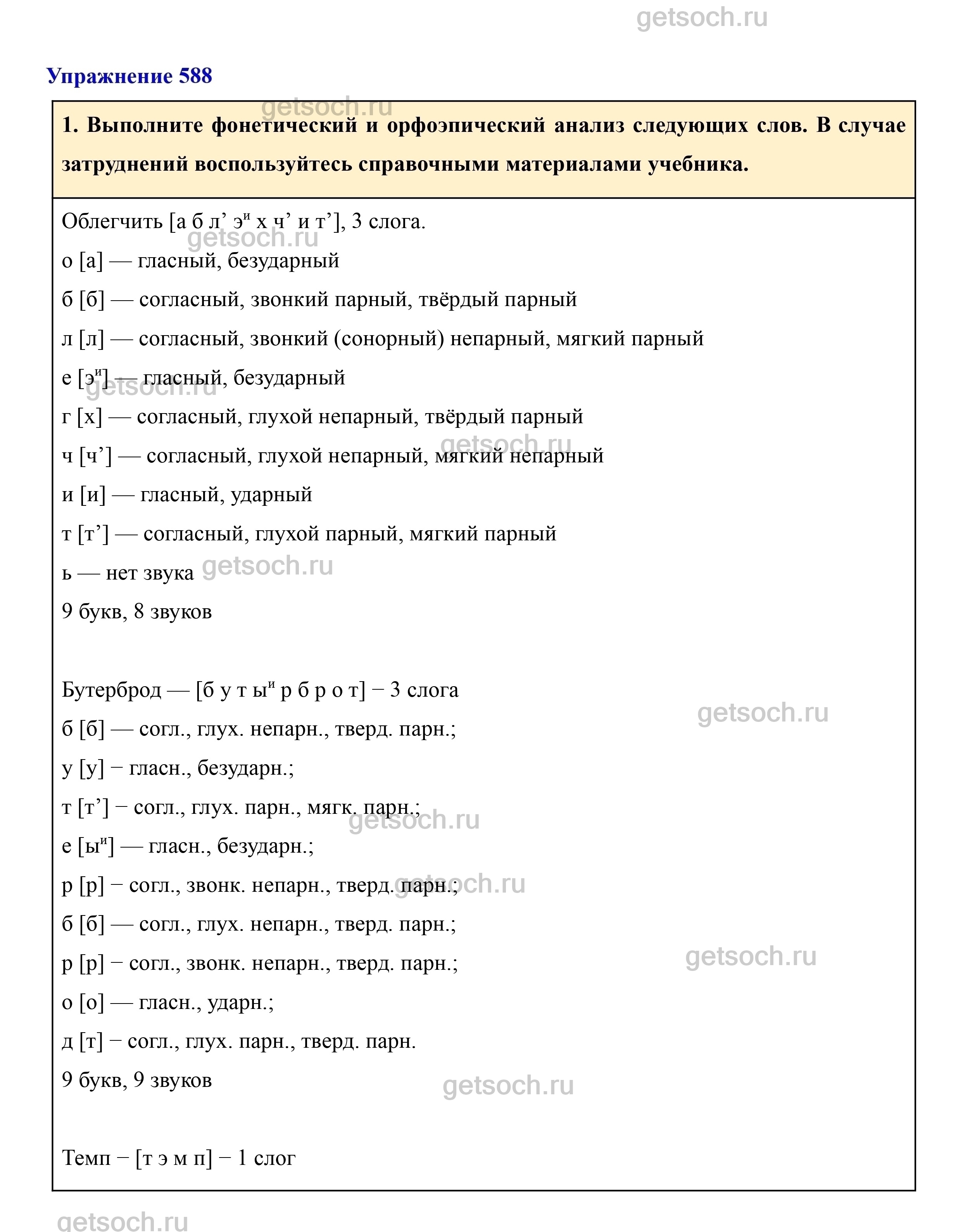 Рассмотрим ответы на Упражнение 588 из учебника по русскому языку для 7 класса Разумовской