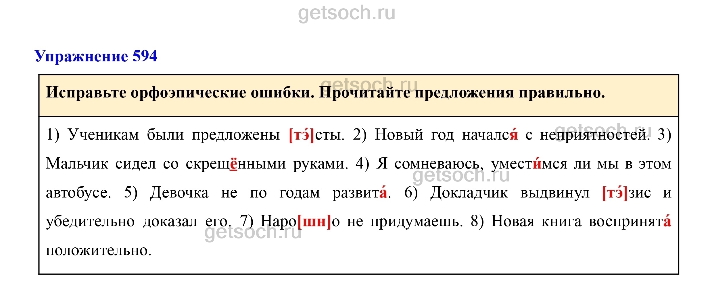 Рассмотрим ответы на Упражнение 594 из учебника по русскому языку для 7 класса Разумовской
