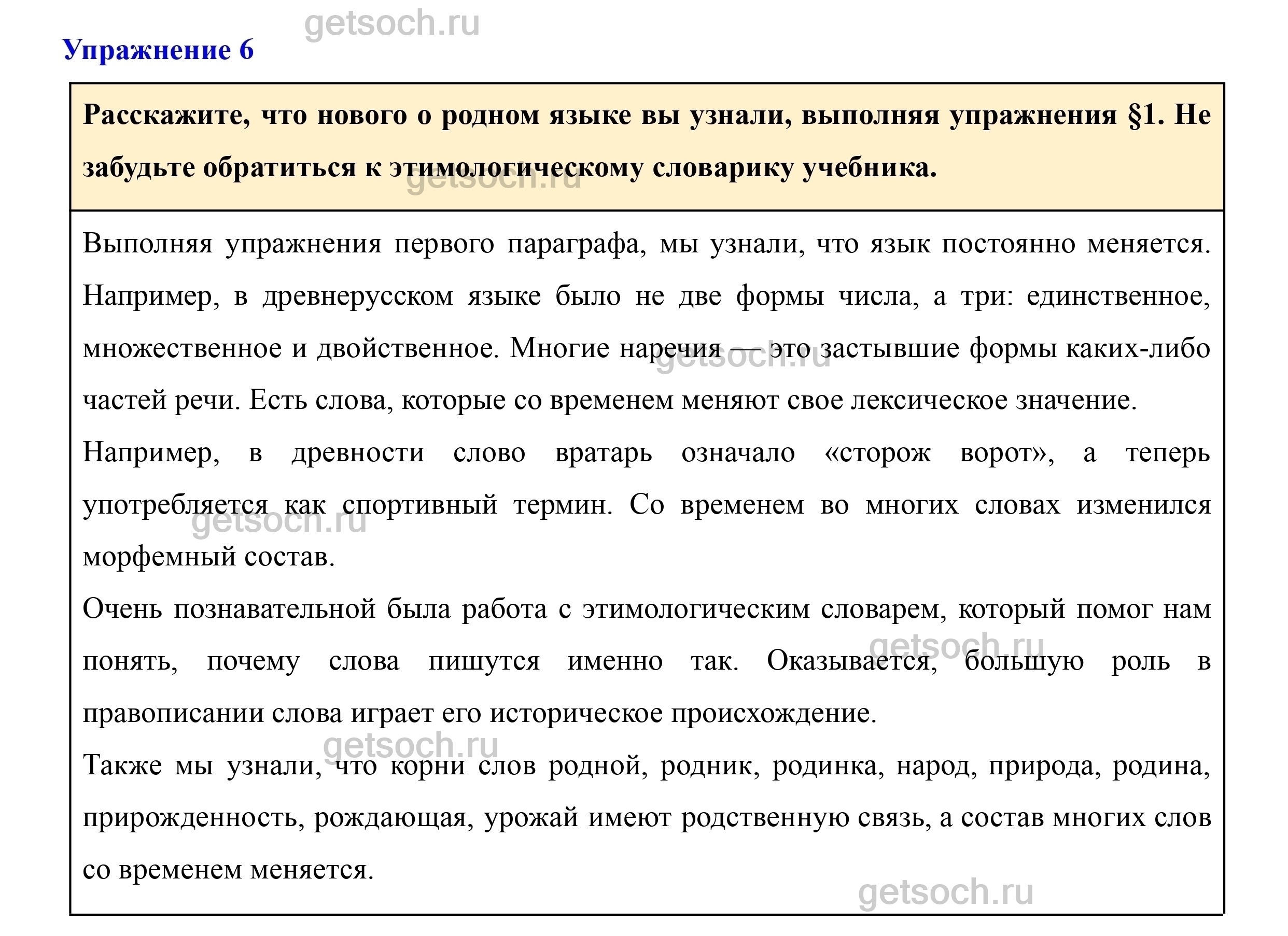 Расскажите, что нового о родном языке вы узнали, выполняя упражнения §1. Не забудьте обратиться к этимологическому словарику учебника.