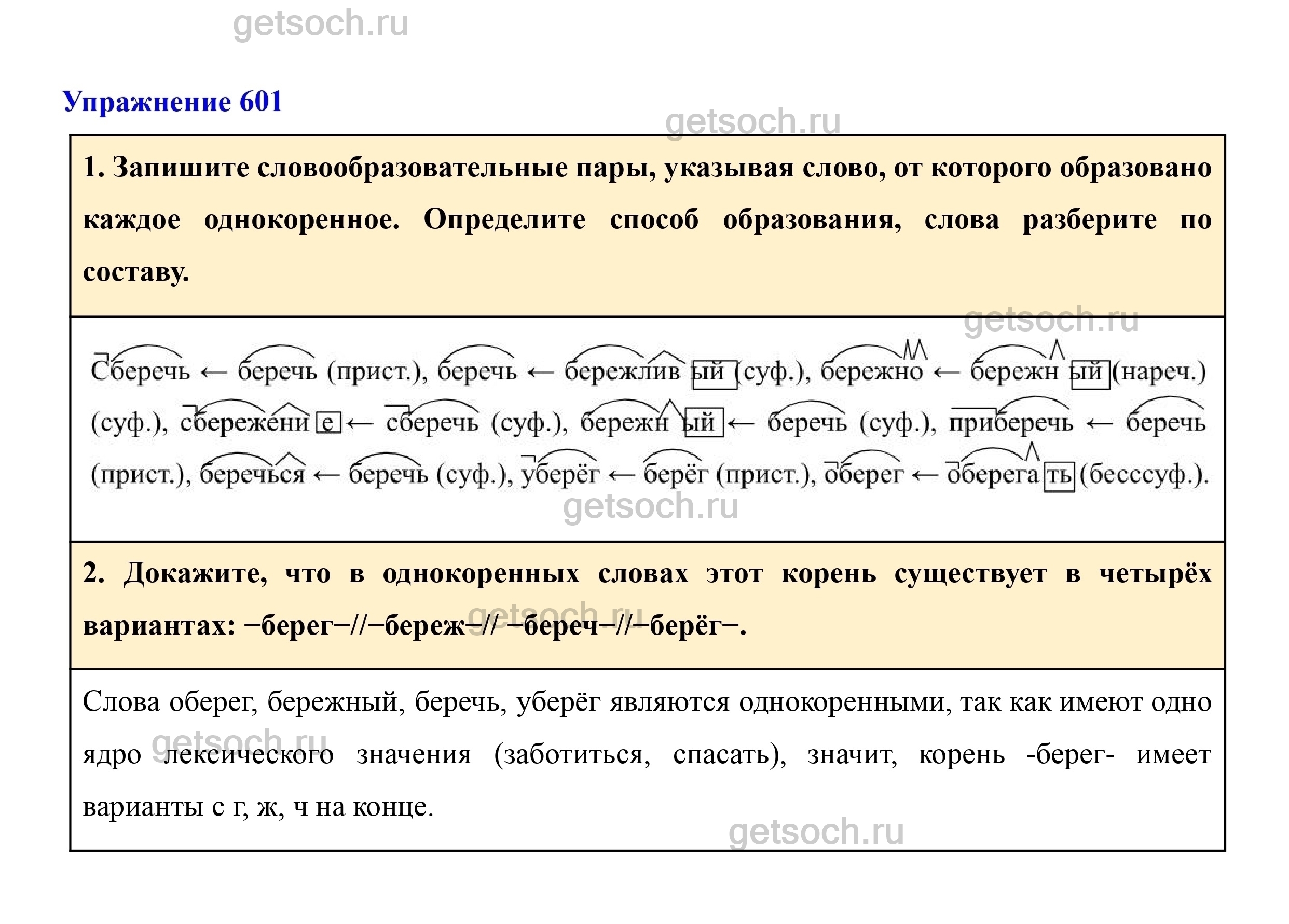 Рассмотрим ответы на Упражнение 601 из учебника по русскому языку для 7 класса Разумовской