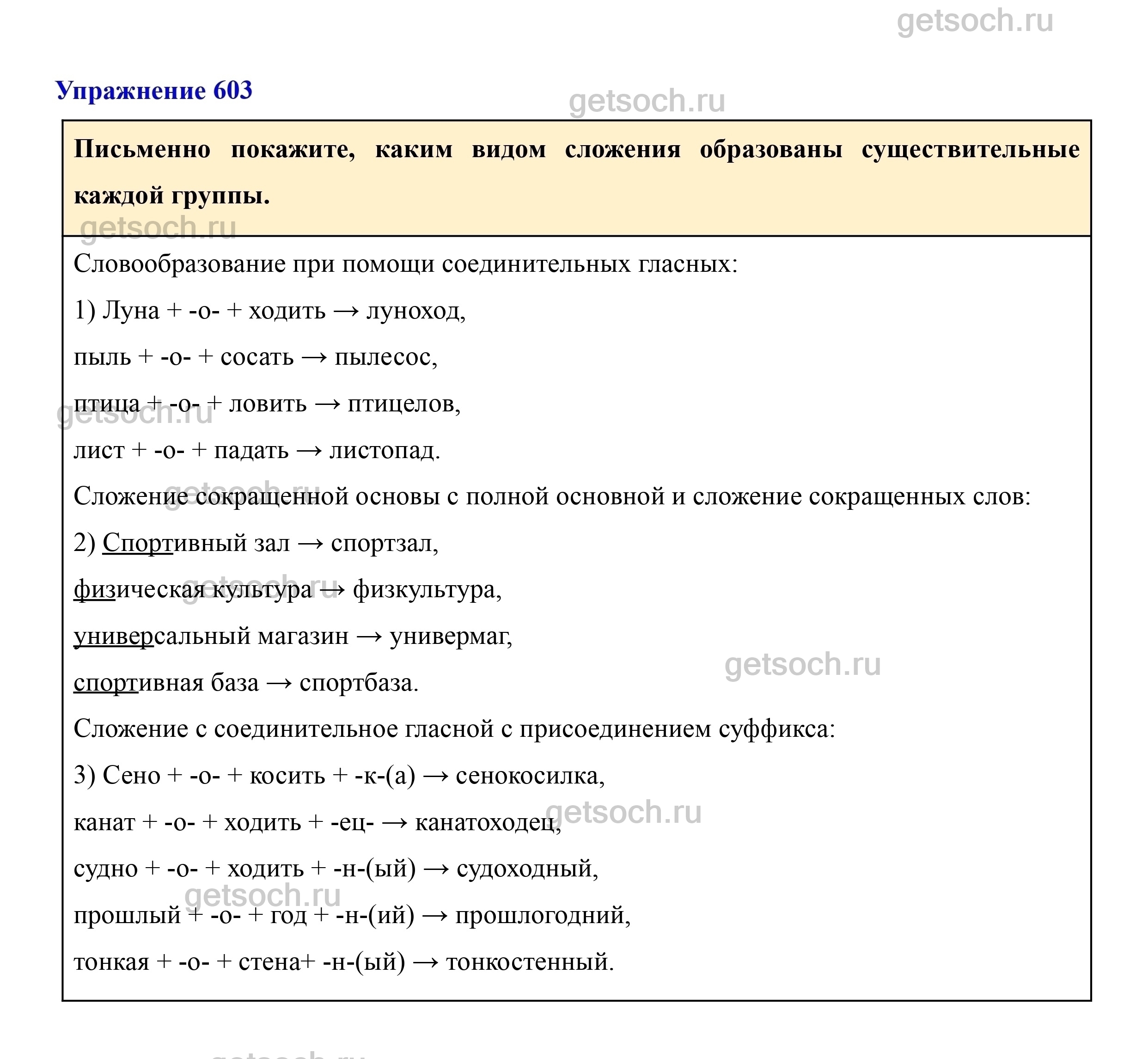 Рассмотрим ответы на Упражнение 603 из учебника по русскому языку для 7 класса Разумовской
