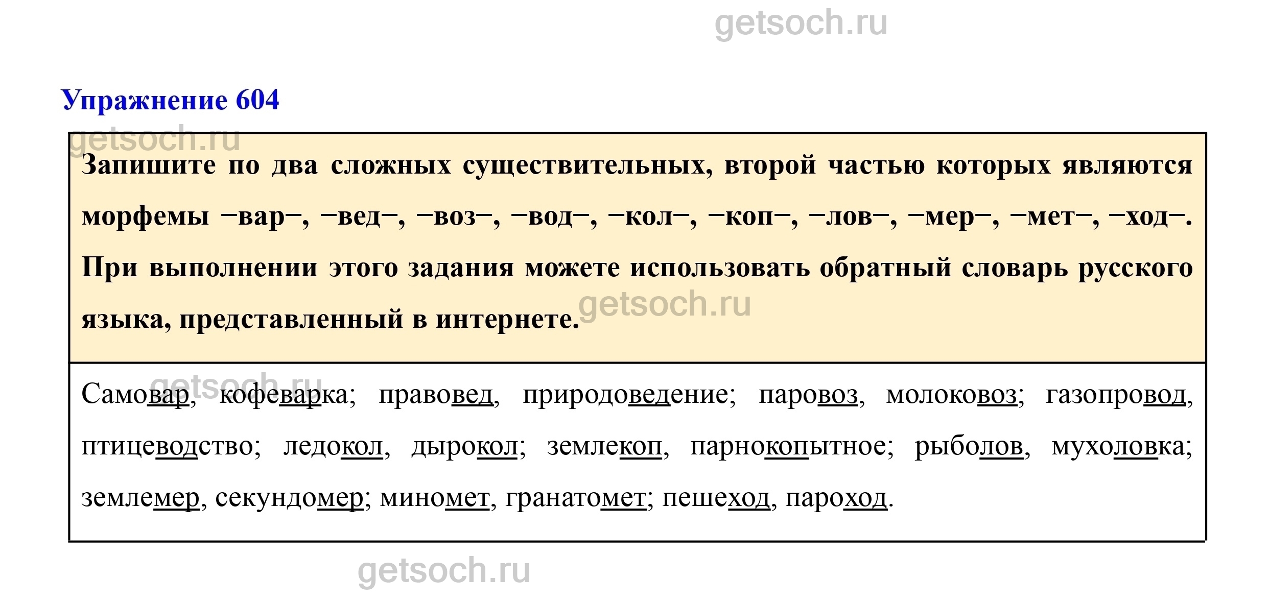 Рассмотрим ответы на Упражнение 604 из учебника по русскому языку для 7 класса Разумовской