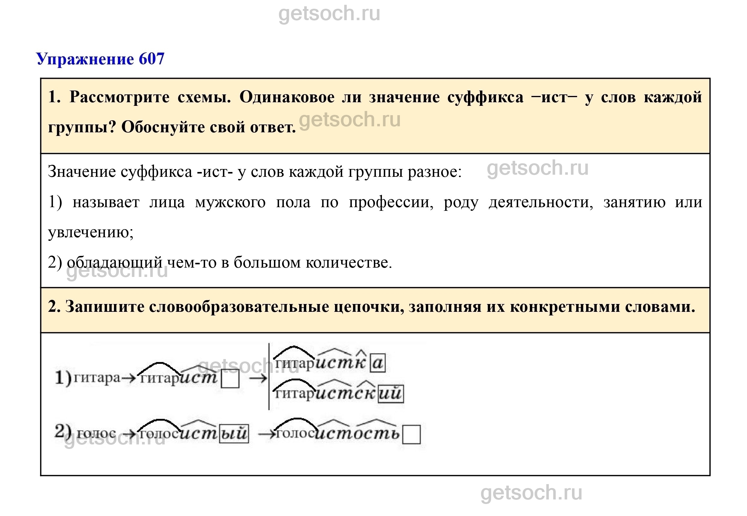 1. Рассмотрите схемы. Одинаковое ли значение суффикса −ист− у слов каждой группы? Обоснуйте свой ответ.