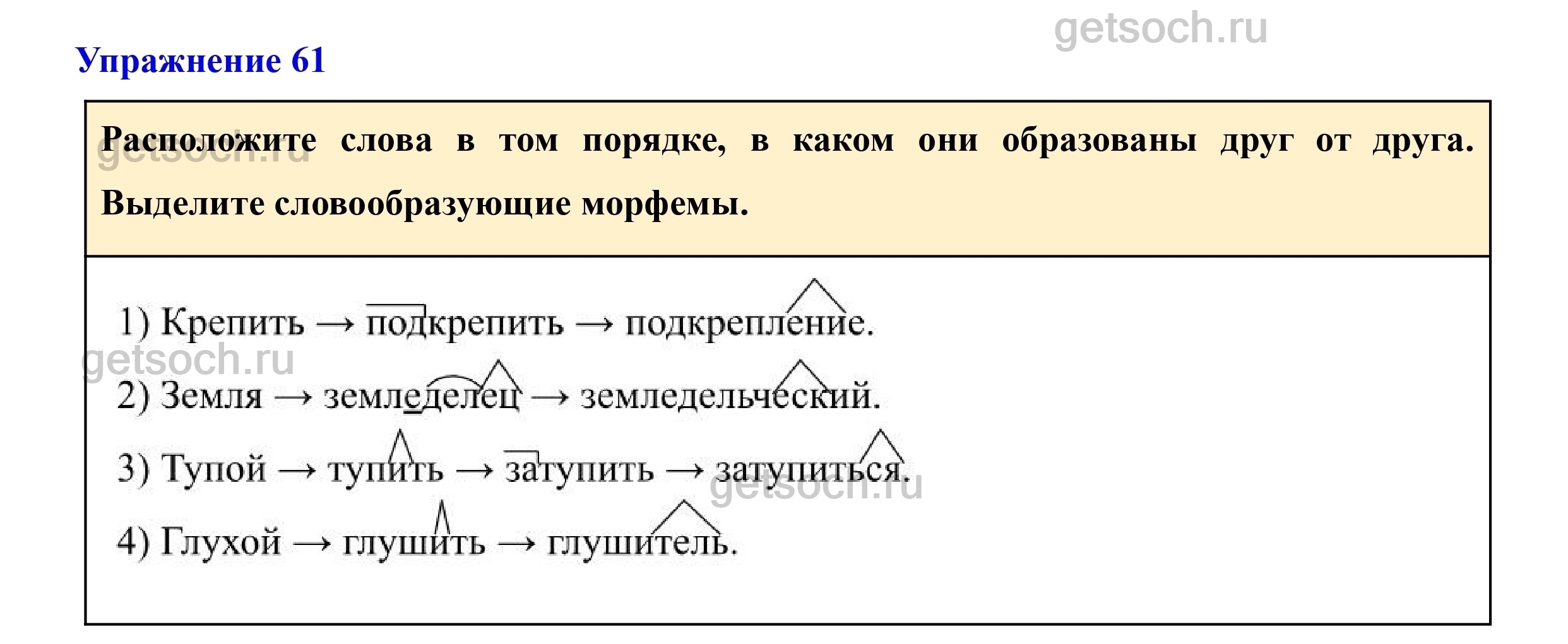 Рассмотрим ответы на Упражнение 61 из учебника по русскому языку для 7 класса Разумовской