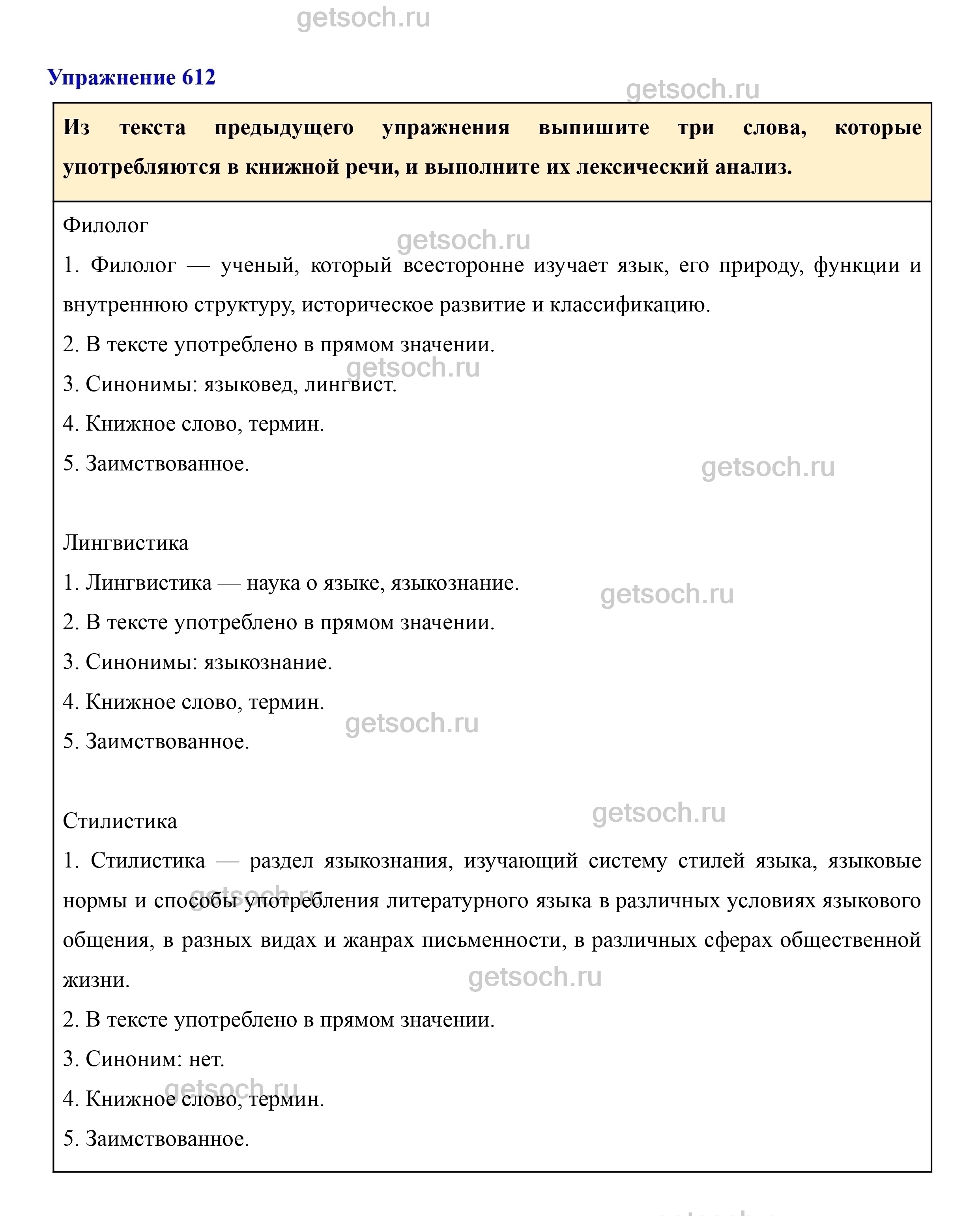 Рассмотрим ответы на Упражнение 612 из учебника по русскому языку для 7 класса Разумовской
