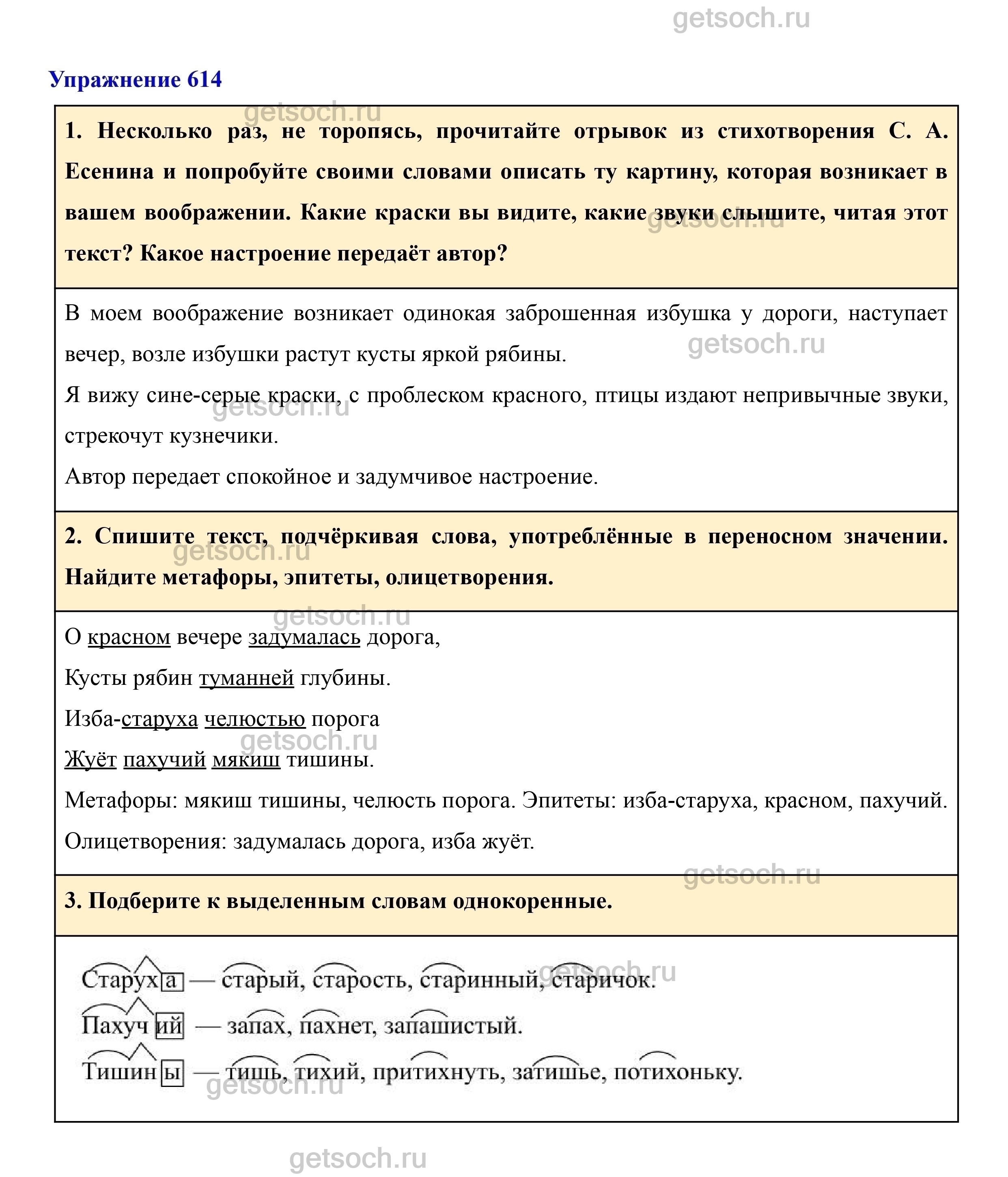 Рассмотрим ответы на Упражнение 614 из учебника по русскому языку для 7 класса Разумовской