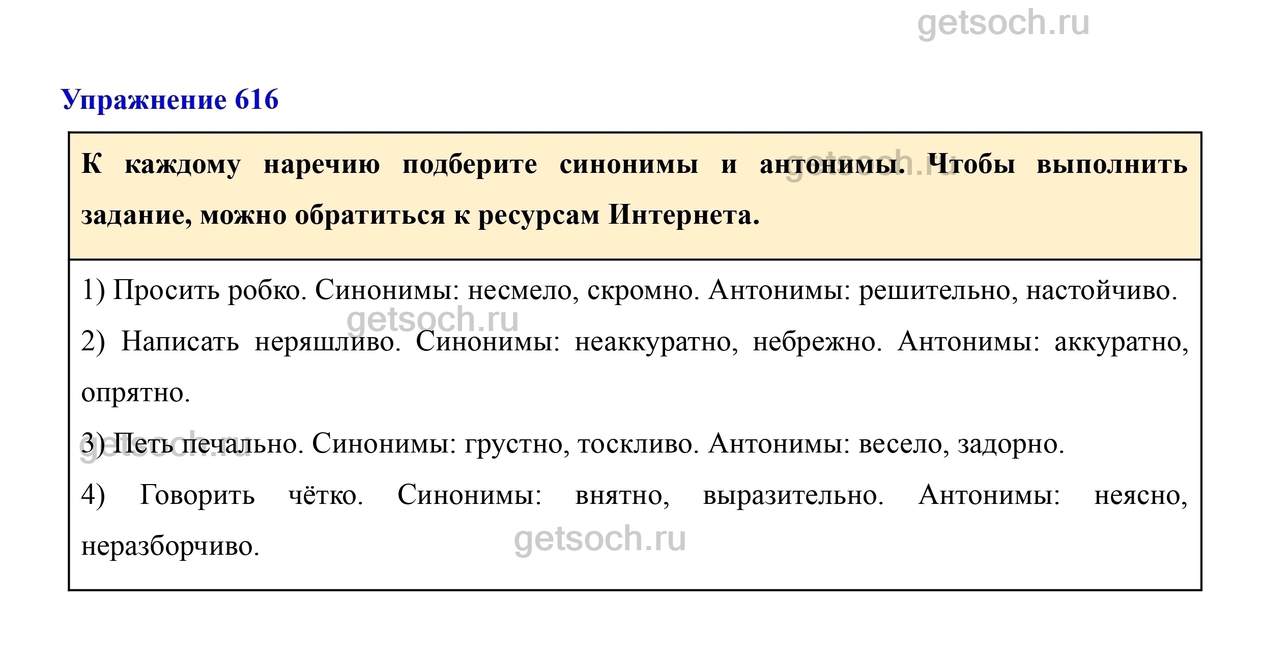К каждому наречию подберите синонимы и антонимы. Чтобы выполнить задание, можно обратиться к ресурсам Интернета.