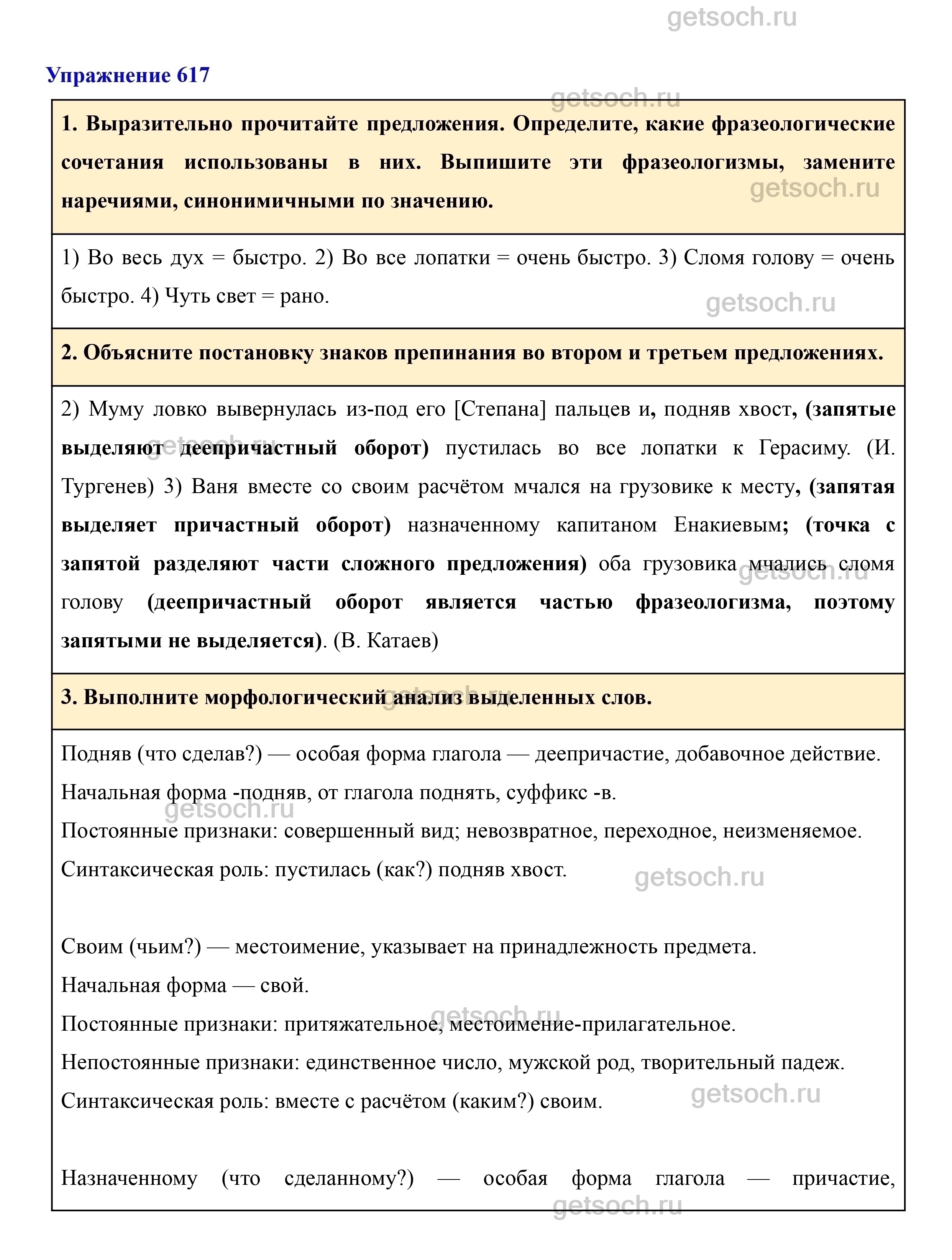 Рассмотрим ответы на Упражнение 617 из учебника по русскому языку для 7 класса Разумовской