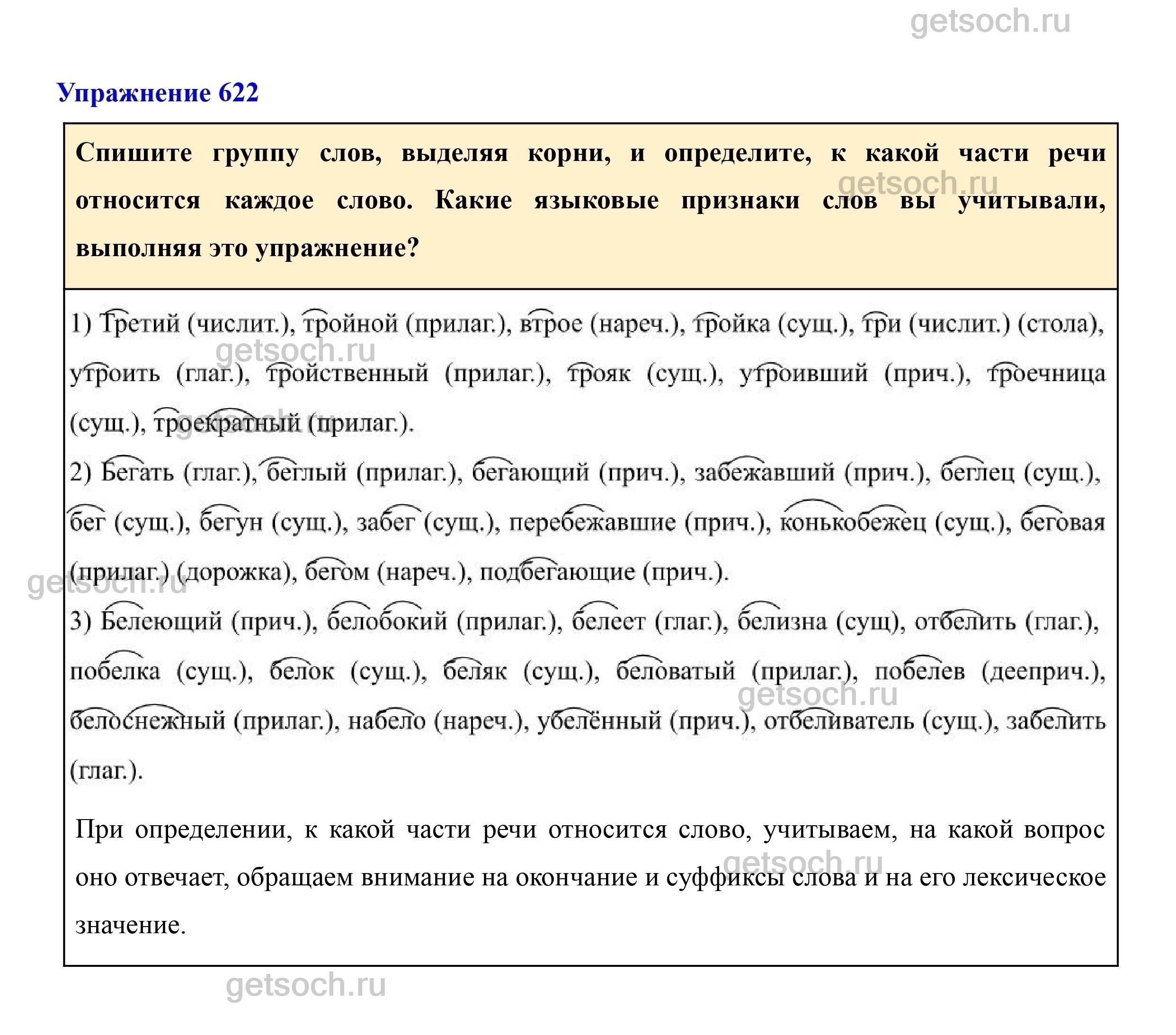 Рассмотрим ответы на Упражнение 622 из учебника по русскому языку для 7 класса Разумовской
