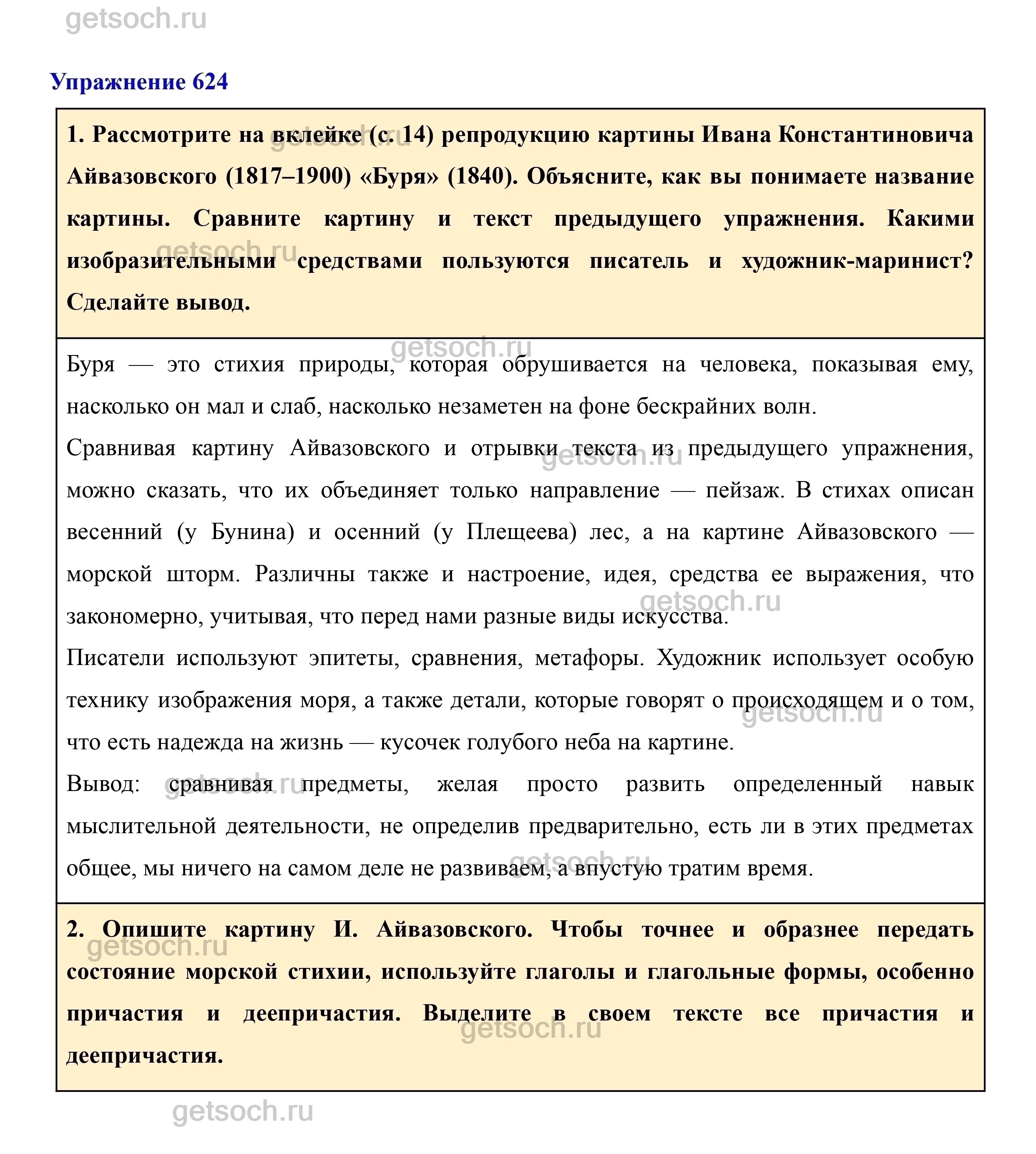 2. Опишите картину И. Айвазовского. Чтобы точнее и образнее передать состояние морской стихии, используйте глаголы и глагольные формы, особенно причастия и деепричастия. Выделите в своем тексте все причастия и деепричастия.