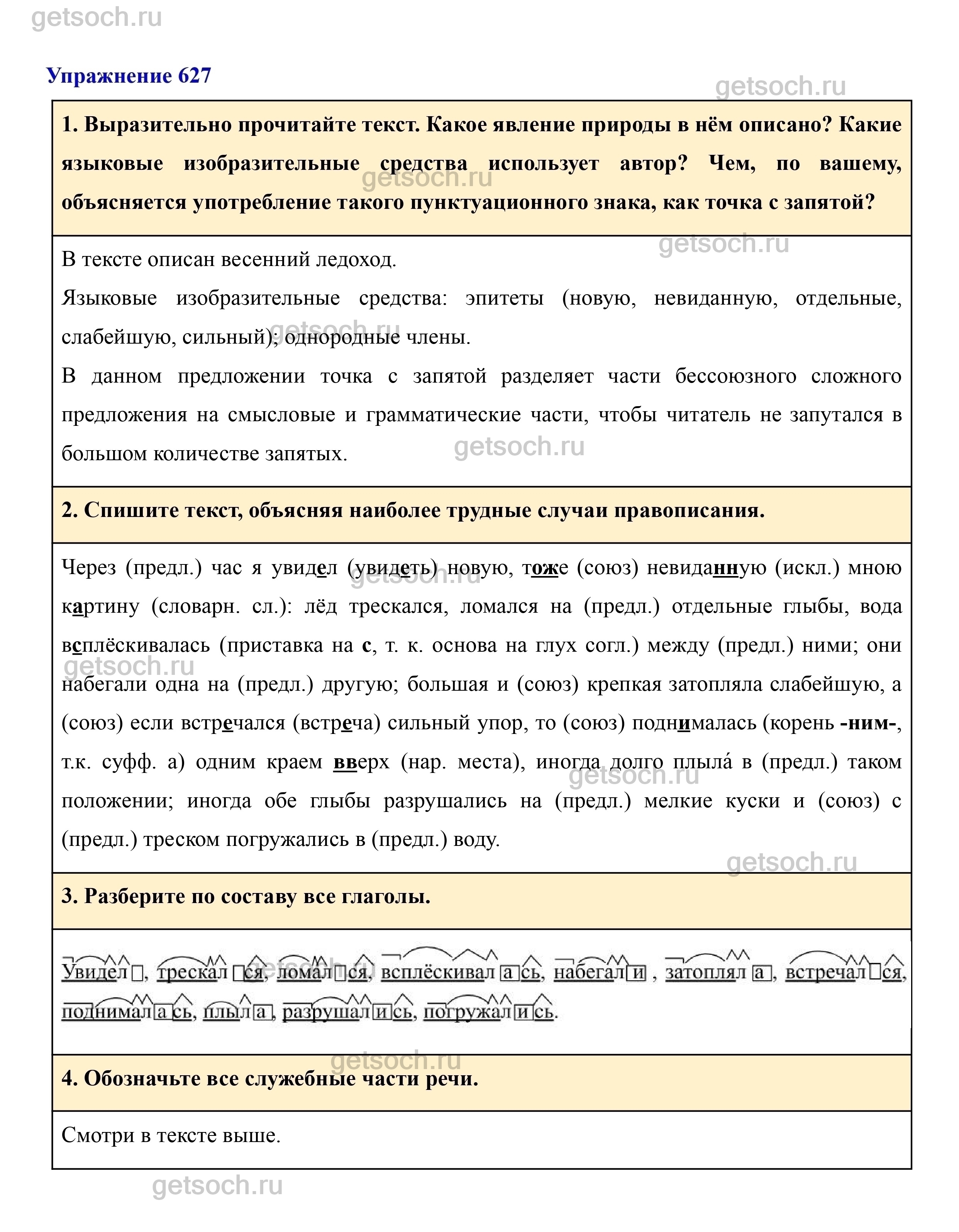 Рассмотрим ответы на Упражнение 627 из учебника по русскому языку для 7 класса Разумовской