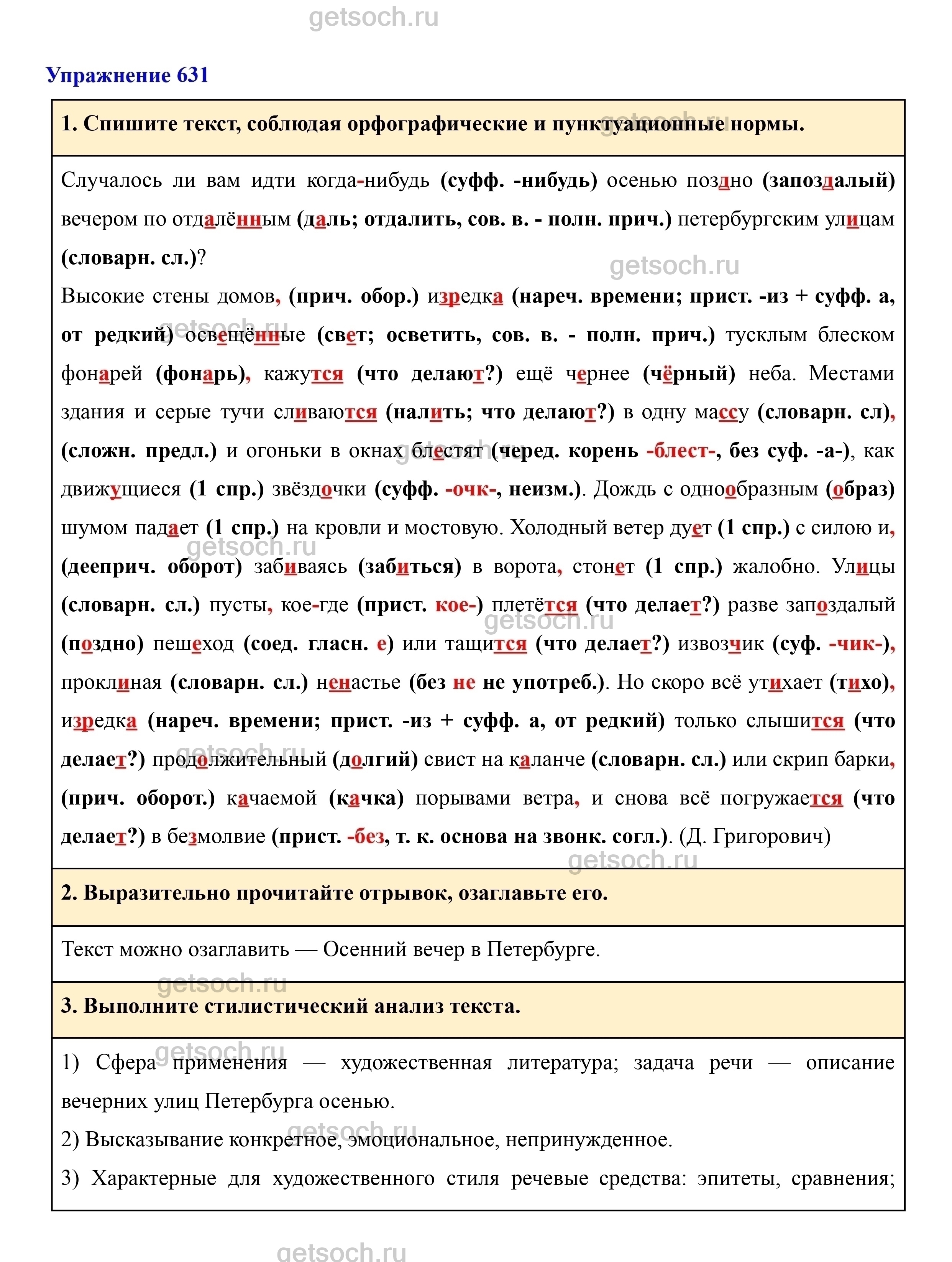 Рассмотрим ответы на Упражнение 631 из учебника по русскому языку для 7 класса Разумовской