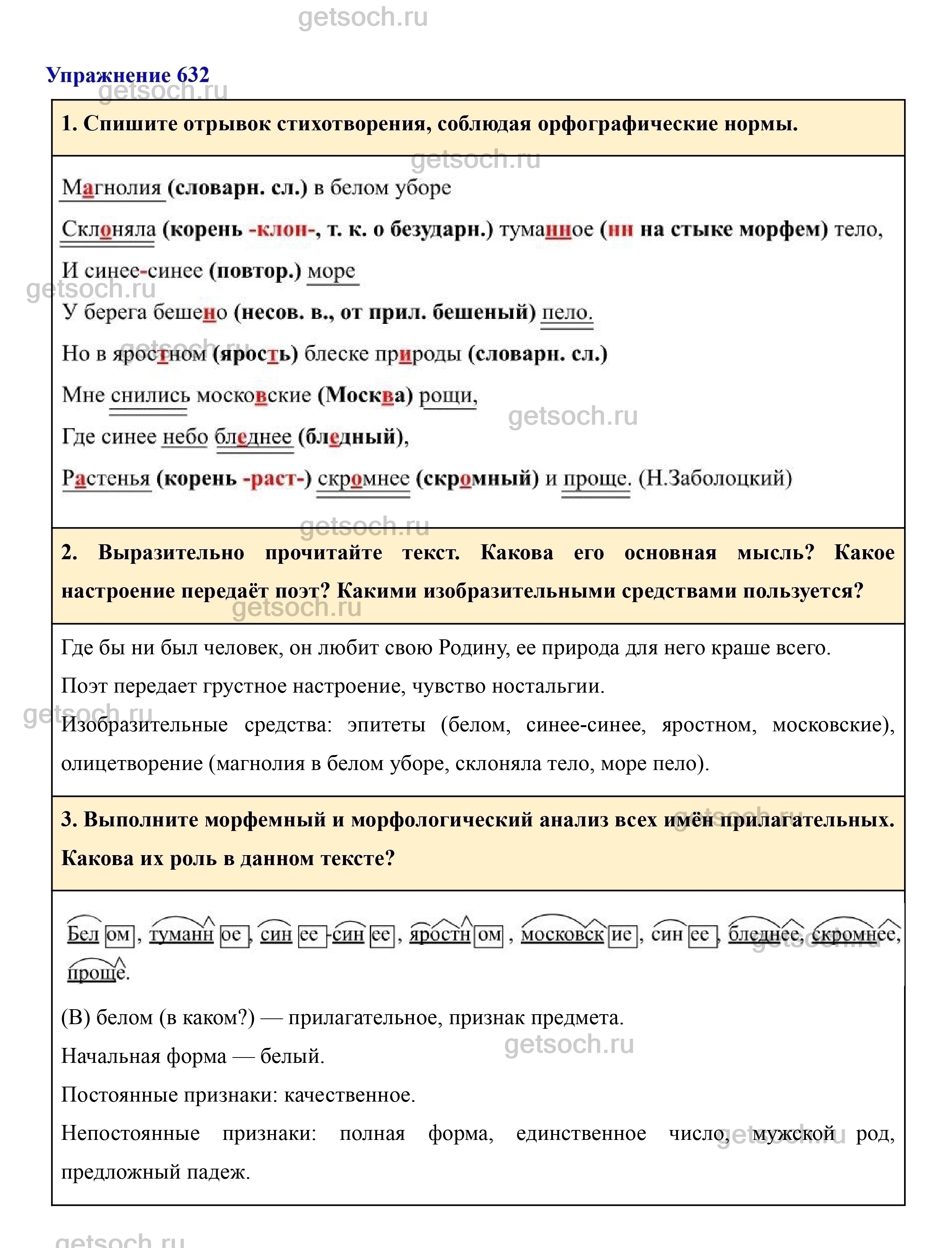 Рассмотрим ответы на Упражнение 632 из учебника по русскому языку для 7 класса Разумовской