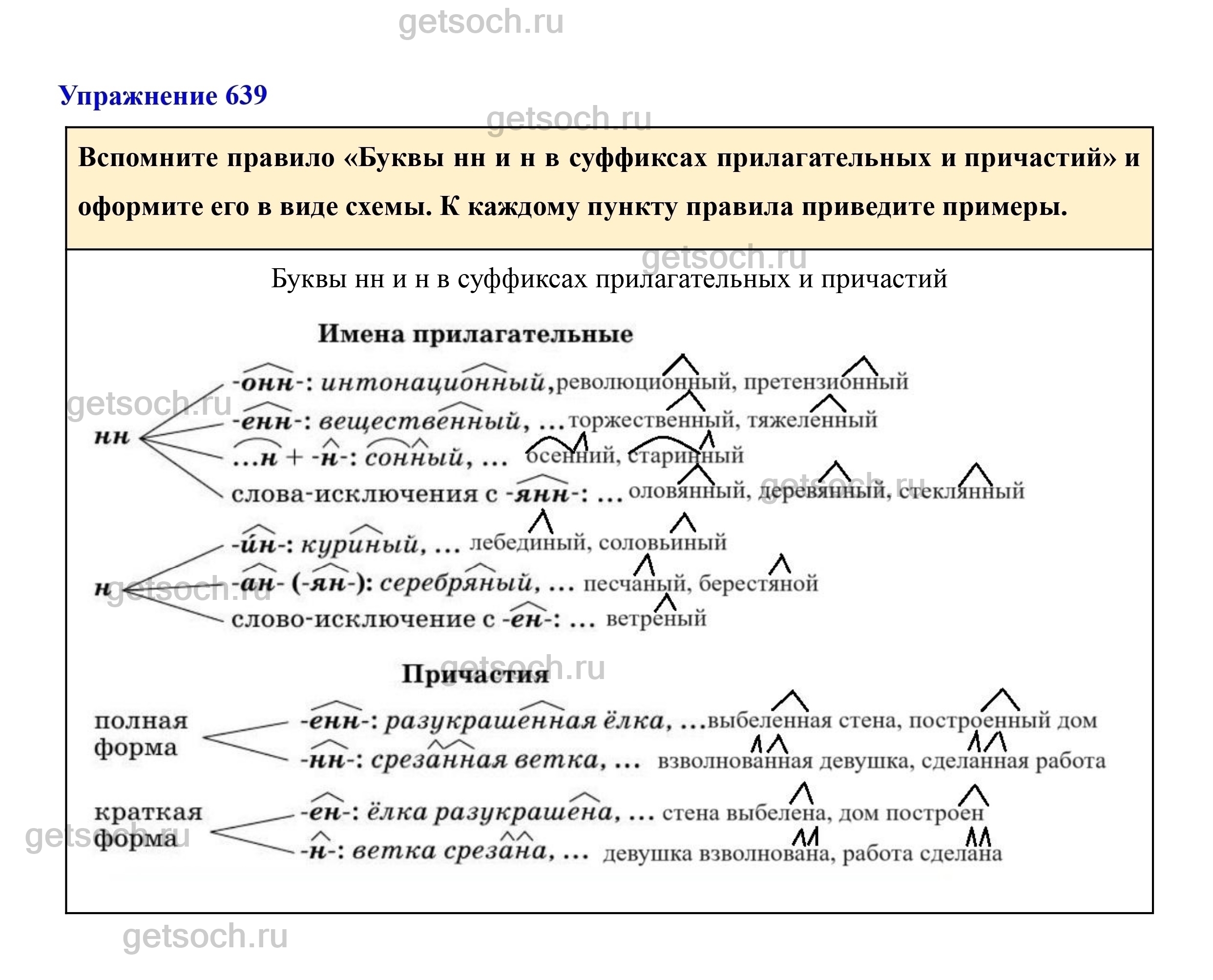 Рассмотрим ответы на Упражнение 639 из учебника по русскому языку для 7 класса Разумовской