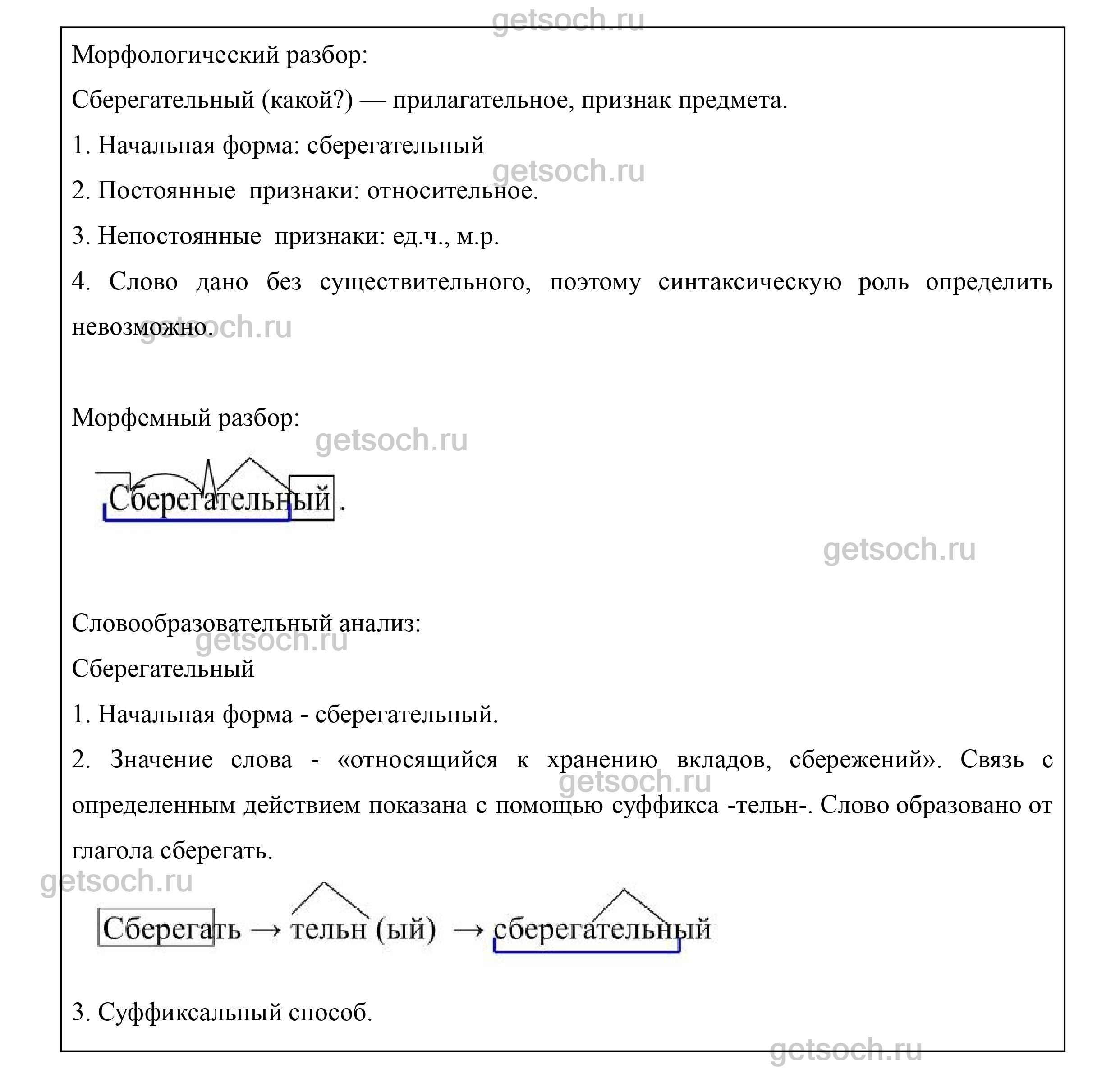 2. Выполните фонетический, морфологический, морфемный и словообразовательный анализ слова сберегательный.