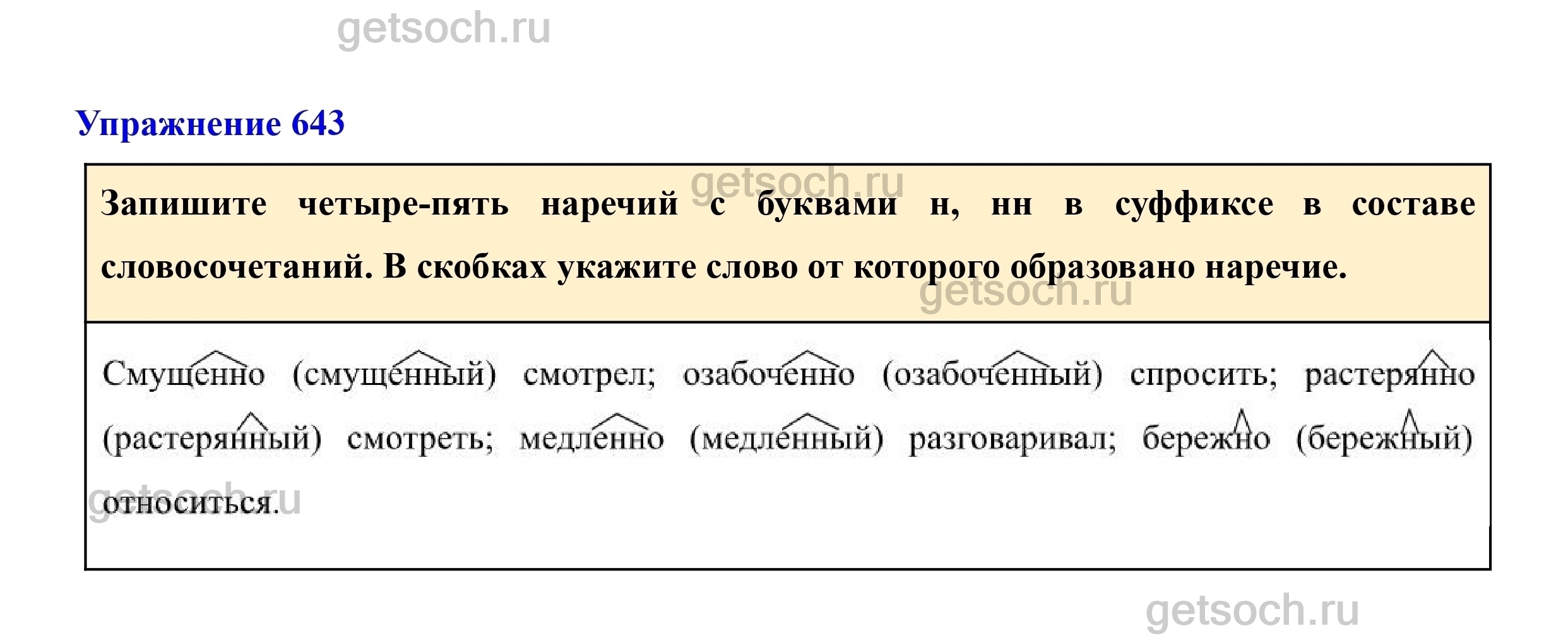 Рассмотрим ответы на Упражнение 643 из учебника по русскому языку для 7 класса Разумовской