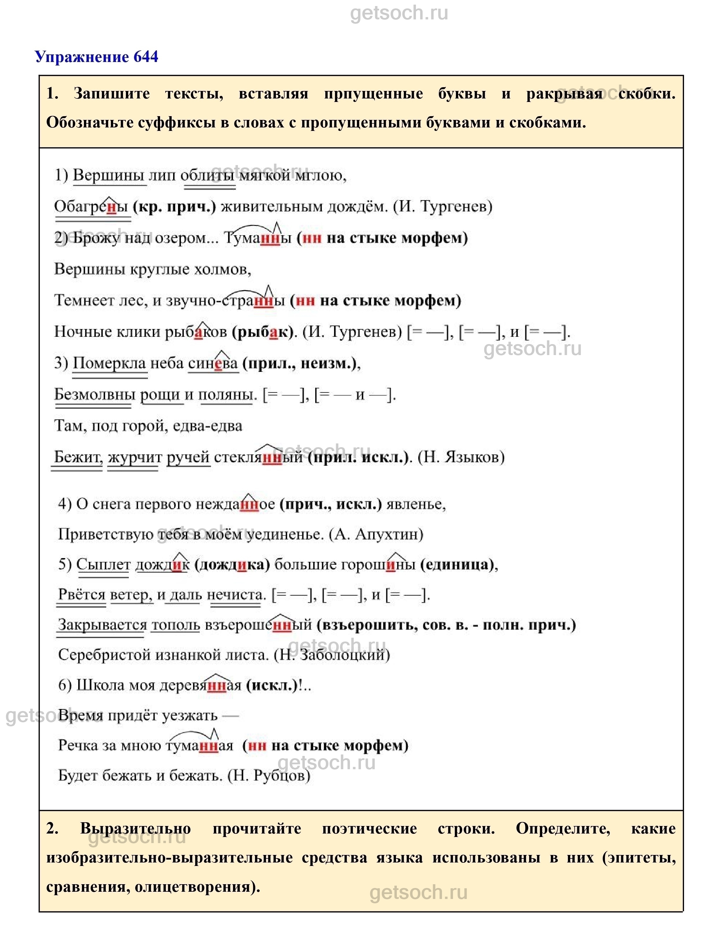 Рассмотрим ответы на Упражнение 644 из учебника по русскому языку для 7 класса Разумовской