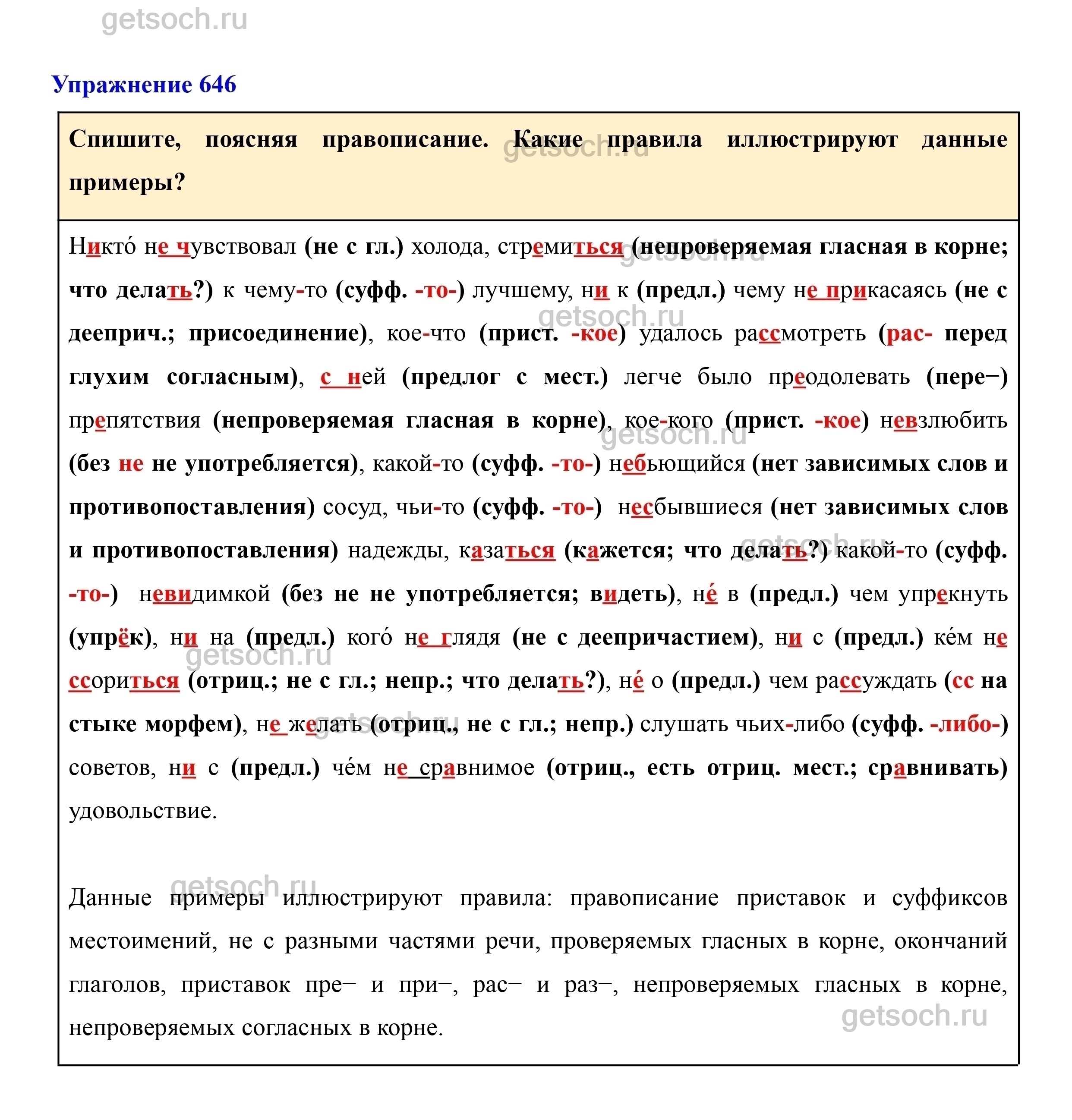 Рассмотрим ответы на Упражнение 646 из учебника по русскому языку для 7 класса Разумовской